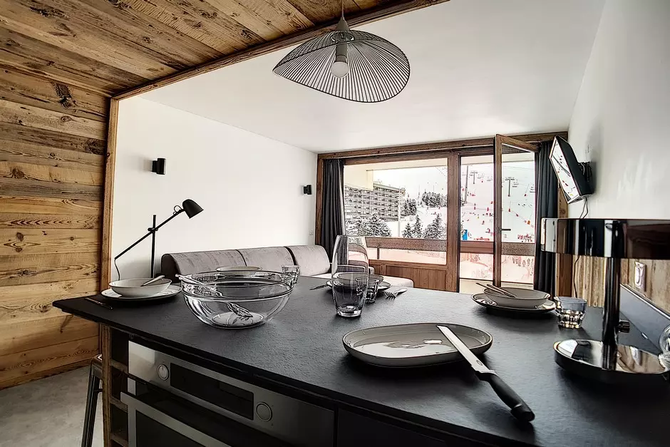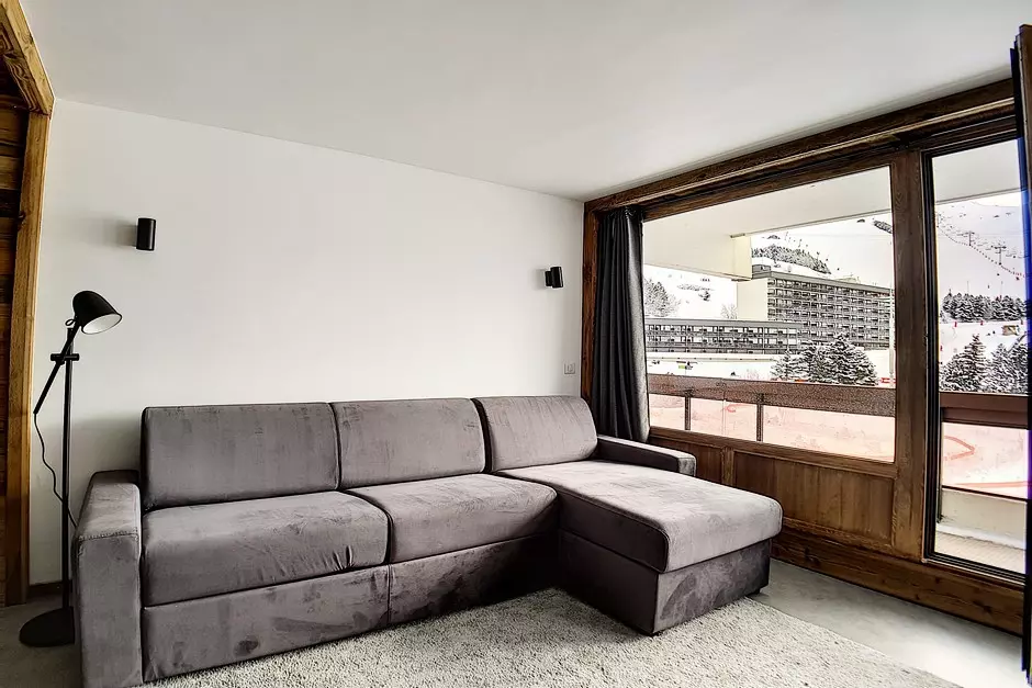 Appartement 2 pièces : 36 m² pour 5 personnes. situé au-dessus de la galerie commerciale, au 2ème étage d'une résidence skis aux pieds, proche du départ des remontées mécaniques et du départ ESF. L'appartement possède un grand balcon orienté Sud.