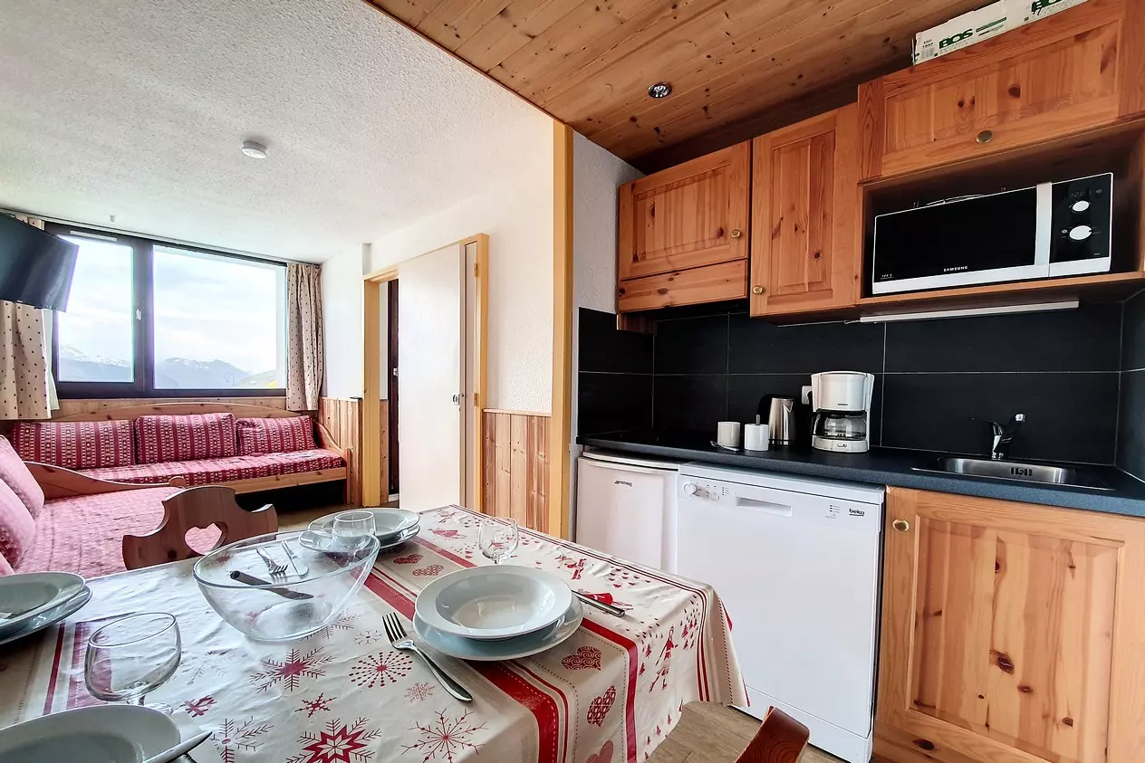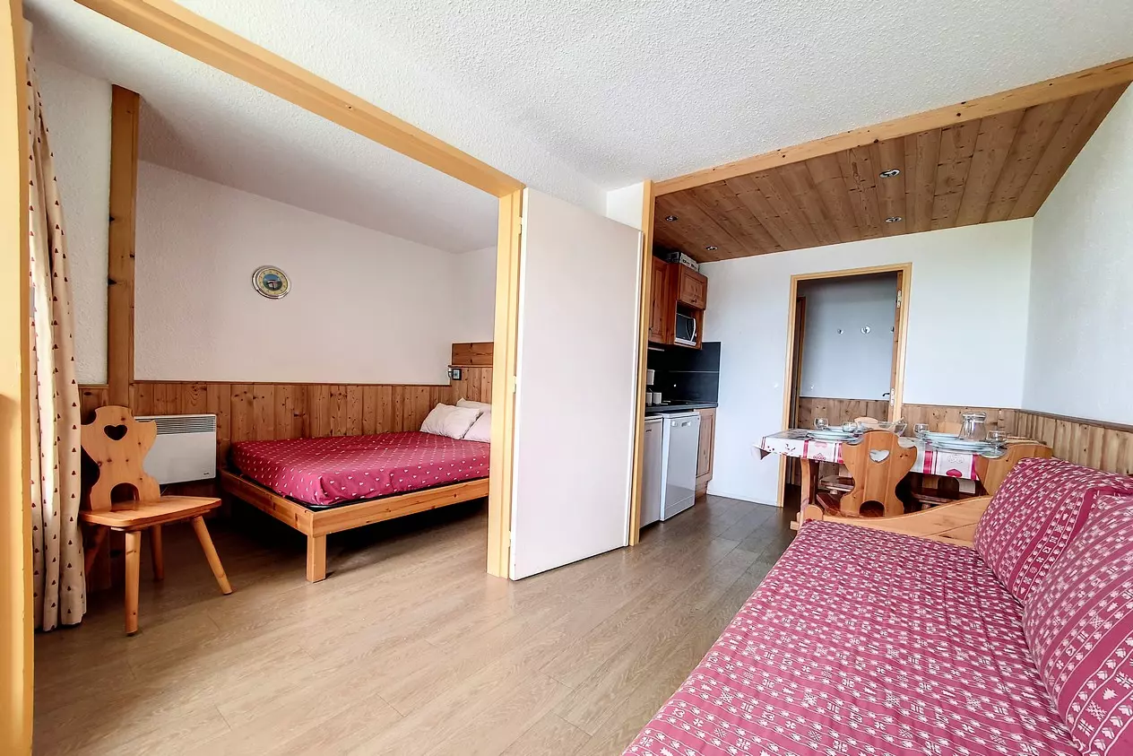 Appartement rénové de deux pièces avec un cloison mobile de 24m² pour 4 personnes. Il est situé au 2ème étage avec ascenseur avec un balcon orienté Nord-Est.