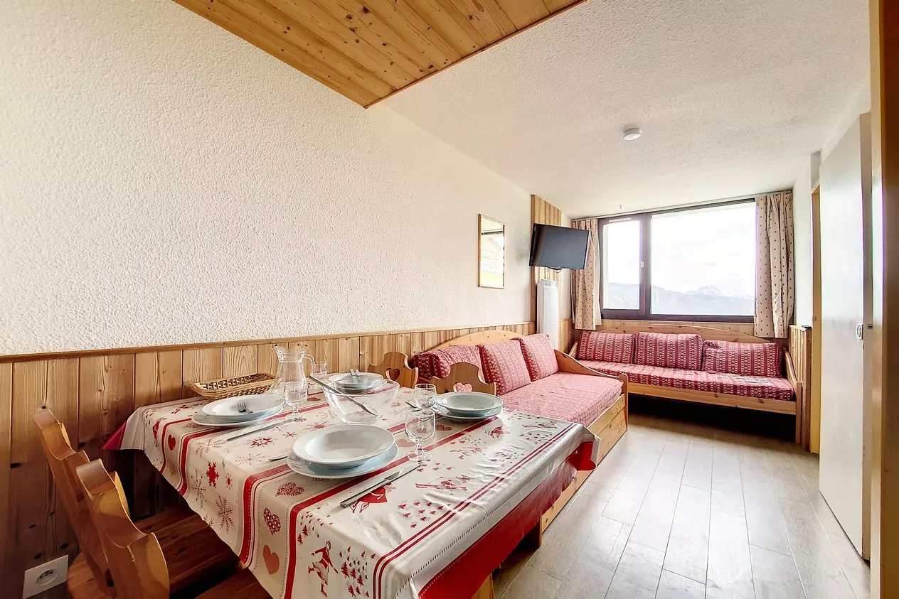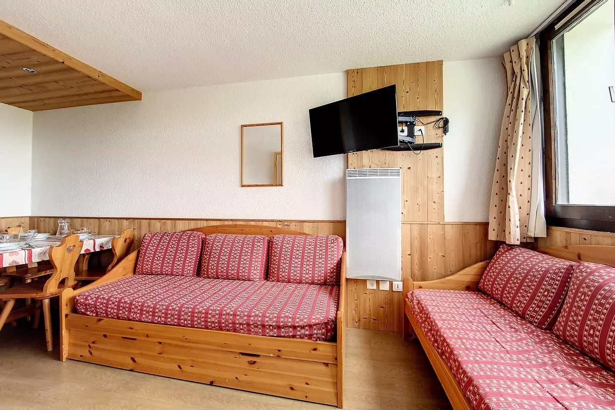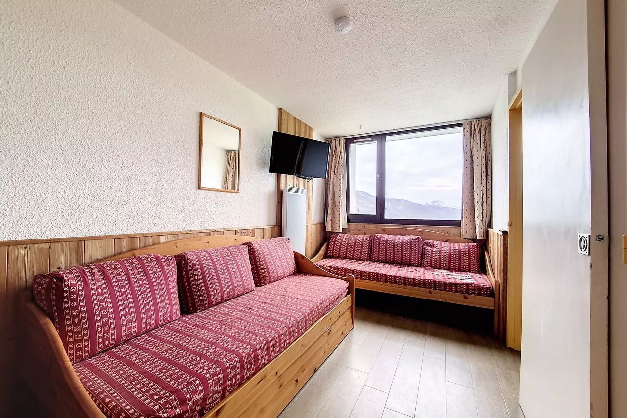 Séjour : 1 canapé-lit 1 personne + 1 lit gigogne relevable. Equipé d'une télévision.