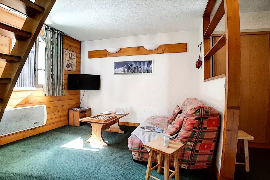 Séjour : 1 canapé-lit 2 personnes. Equipé d'une télévision.