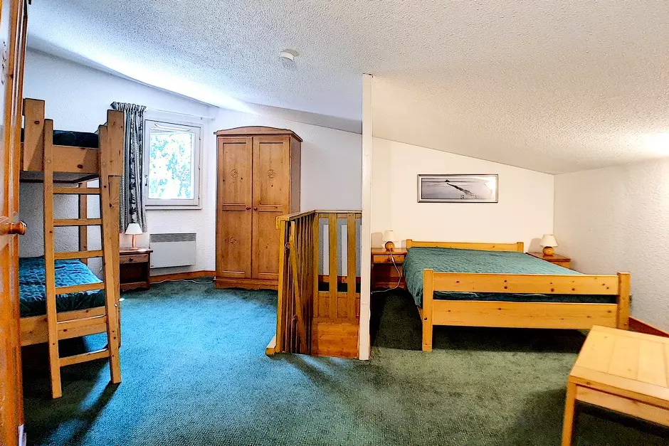 Mezzanine : 2 lits 2 personnes superposés, 1 lit 1 personne et 1 lit 2 personnes.