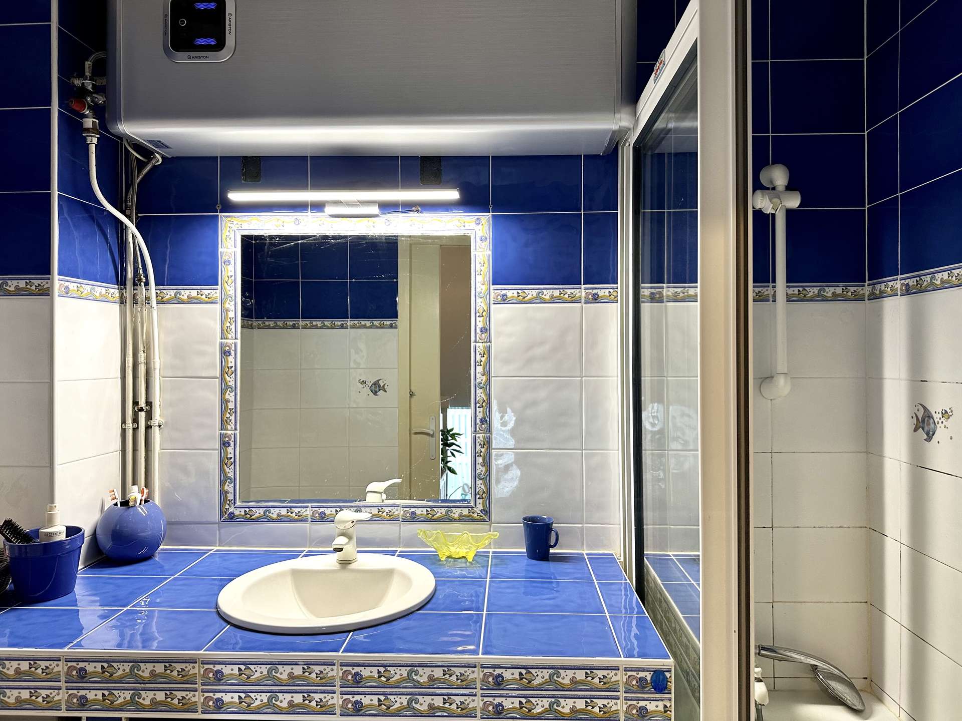 Dès l’entrée, vous accédez à l’espace nuit en mezzanine, comprenant un lit de 120 cm, parfait pour un adulte ou deux enfants. Ce niveau comprend également une salle de bain avec une petite baignoire, un meuble vasque avec son grand miroir, ainsi qu’un WC. Vous trouverez également une chambre confortable avec un lit double 140 cm, deux tables de chevet et de grands placards pour vos effets personnels.