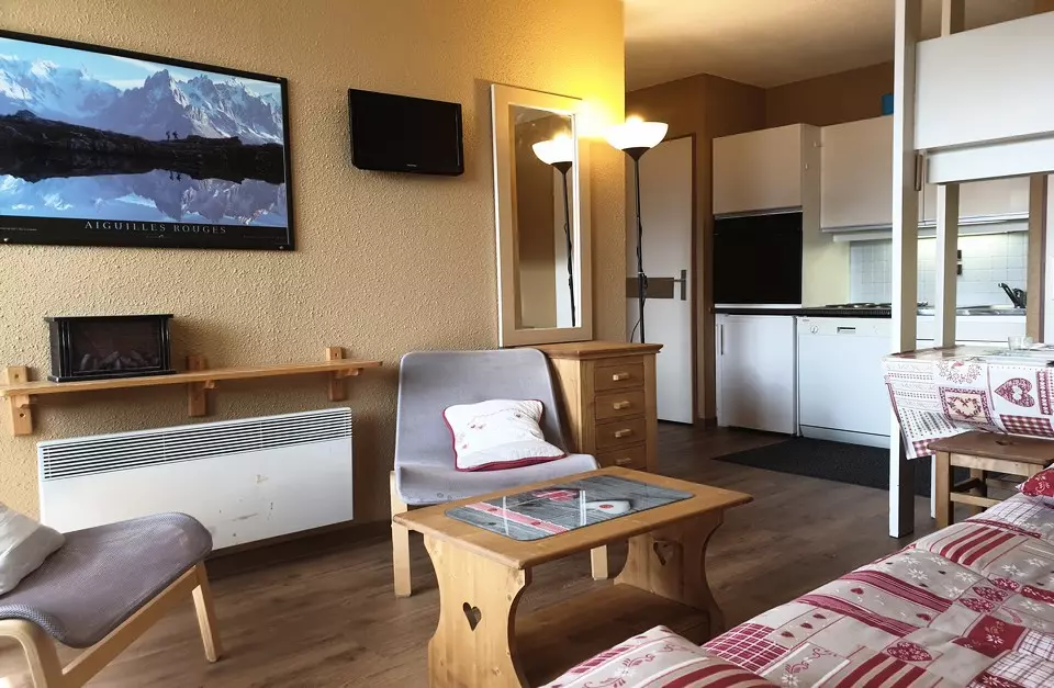 Appartement 2 pièces de 31m² proche des pistes pour 5 personnes. Il est situé au 3ème étage de la résidence et possède un balcon exposé sud.