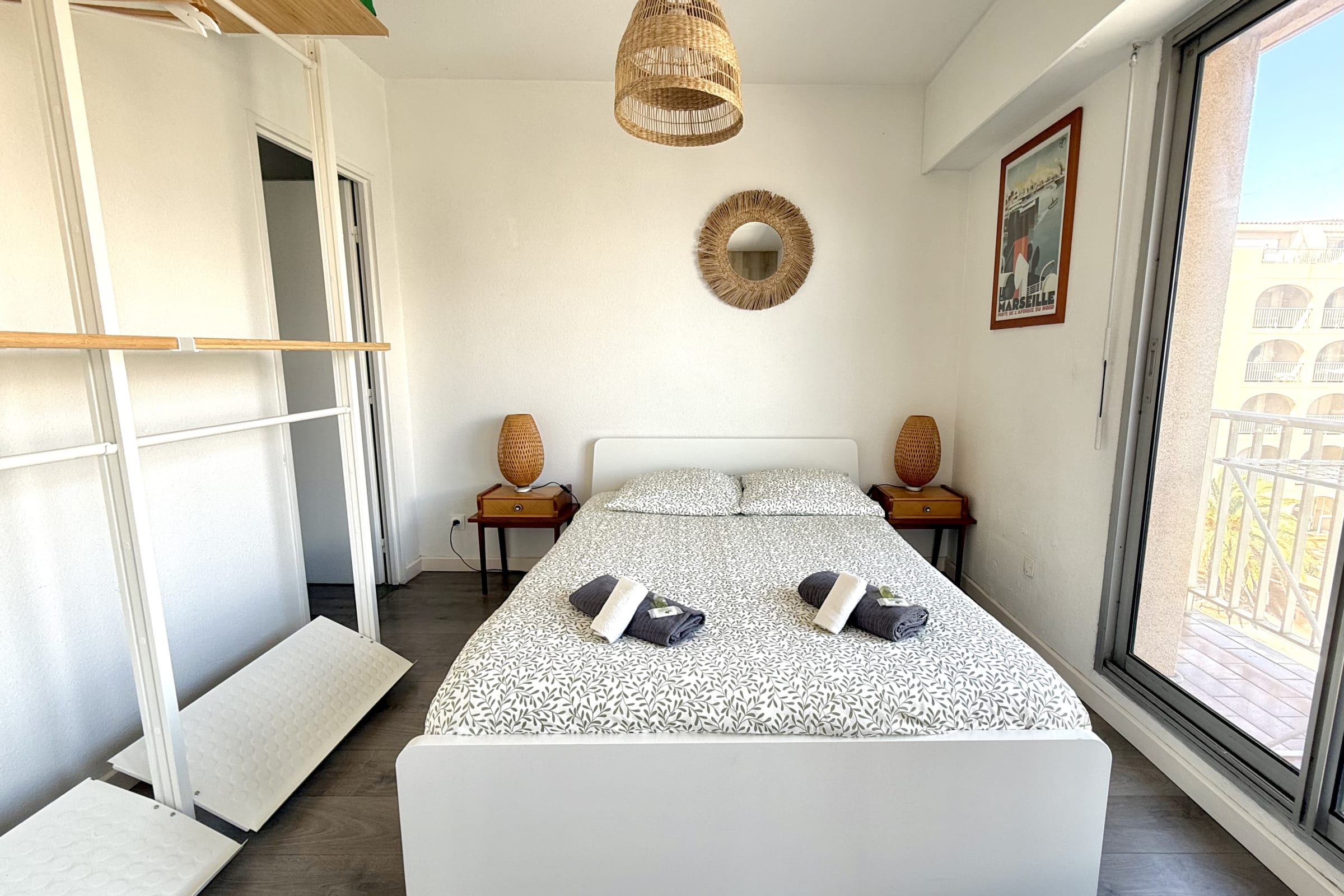 Dans le coin nuit, vous retrouverez le lit double (140x190cm) ainsi qu'un dressing pour ranger vos affaires.