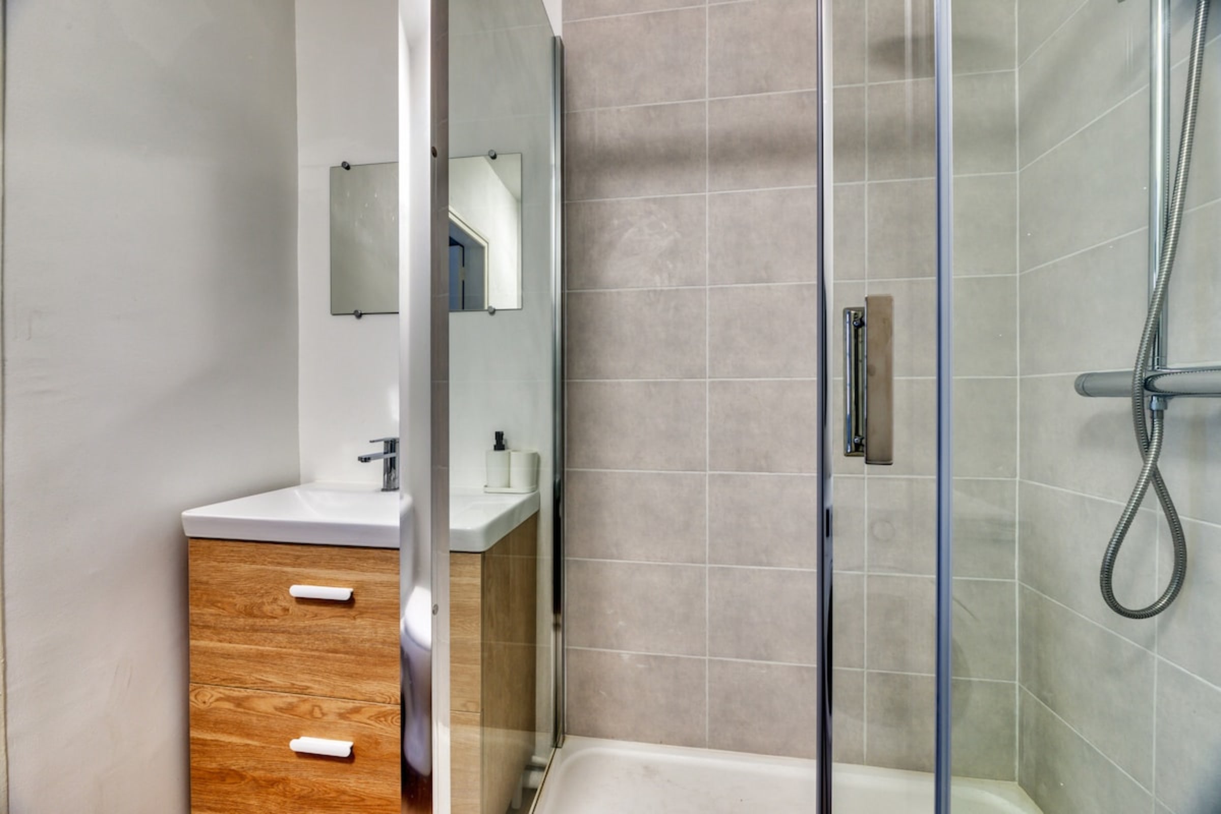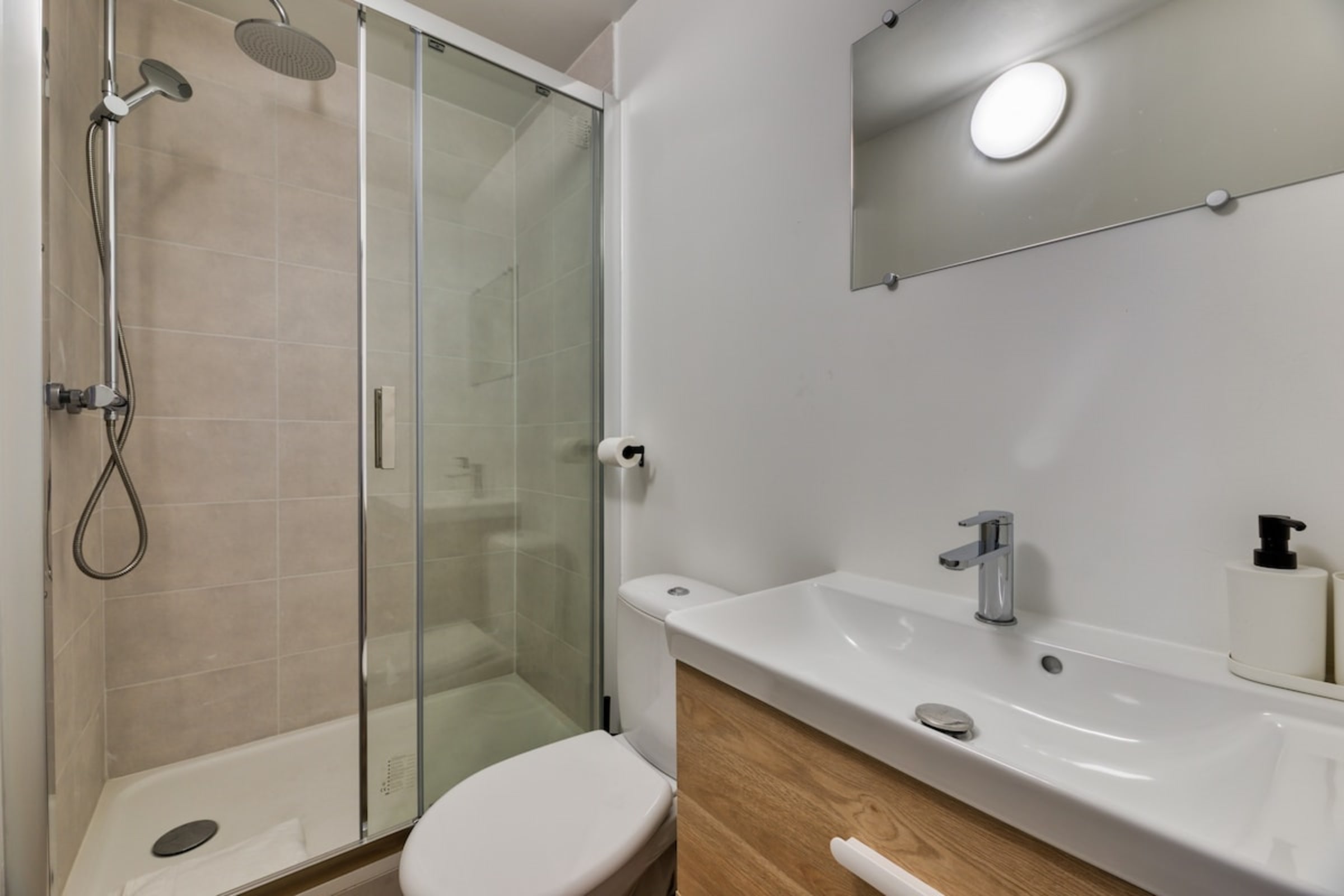 Au premier niveau, vous trouverez deux spacieuses chambres avec leurs salles d’eau privées. À l’étage, une troisième chambre avec lit double dispose également de sa propre salle d’eau avec douche et WC.