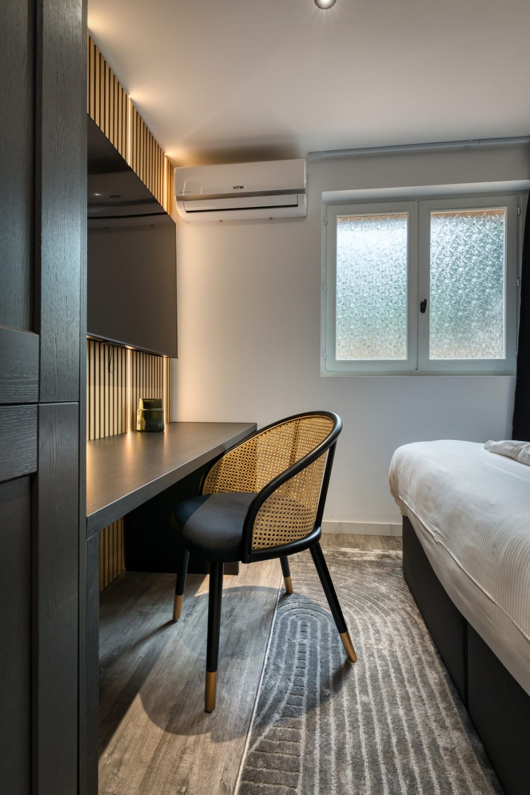 Dans la pièce de vie, profitez de la lumière naturelle et d’une télévision pour vos moments de relaxation. Le linge de lit et de maison est fourni pour un séjour en toute sérénité.