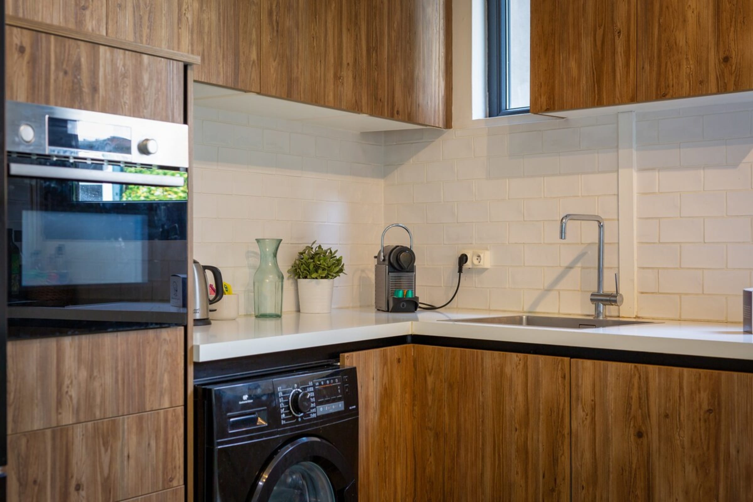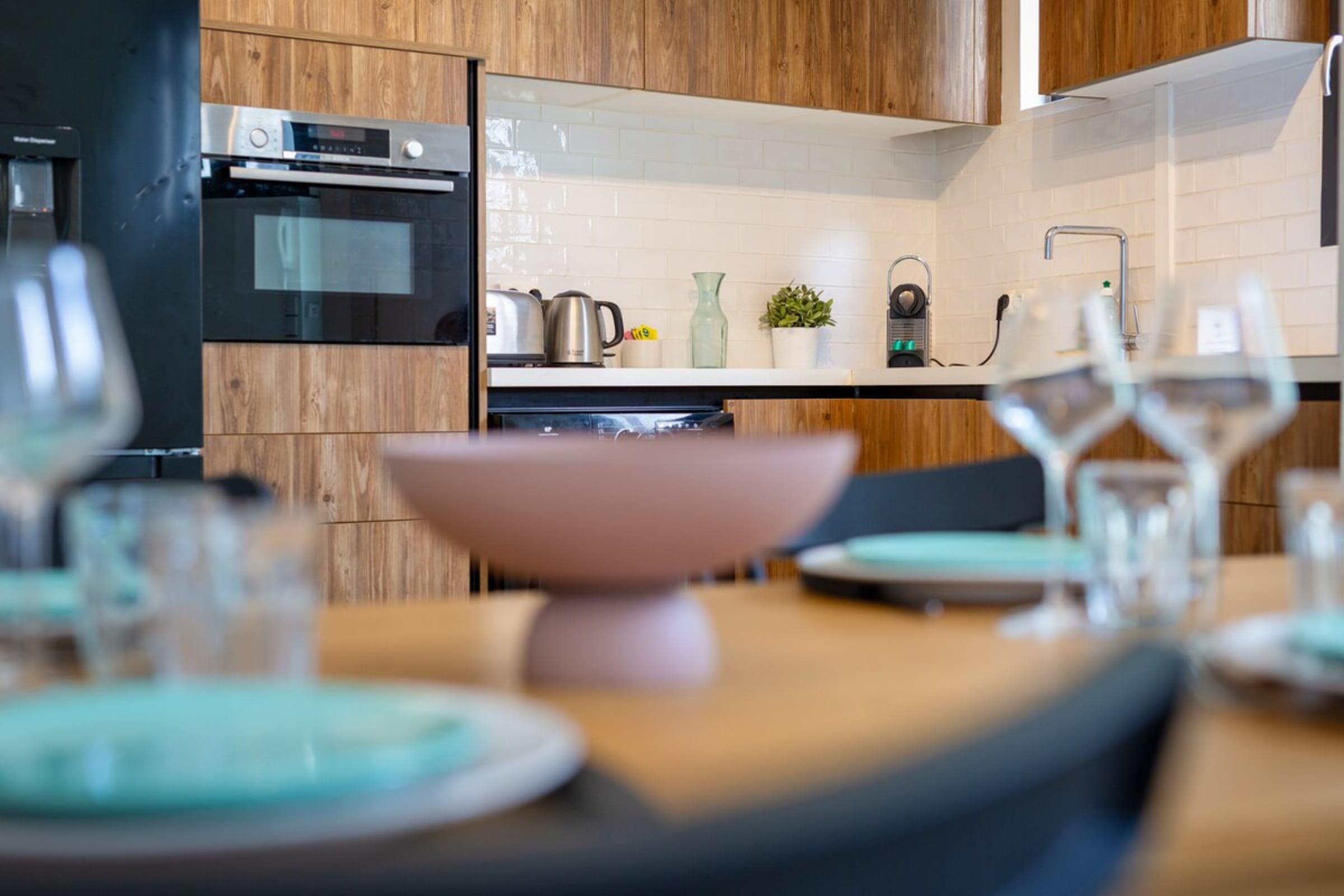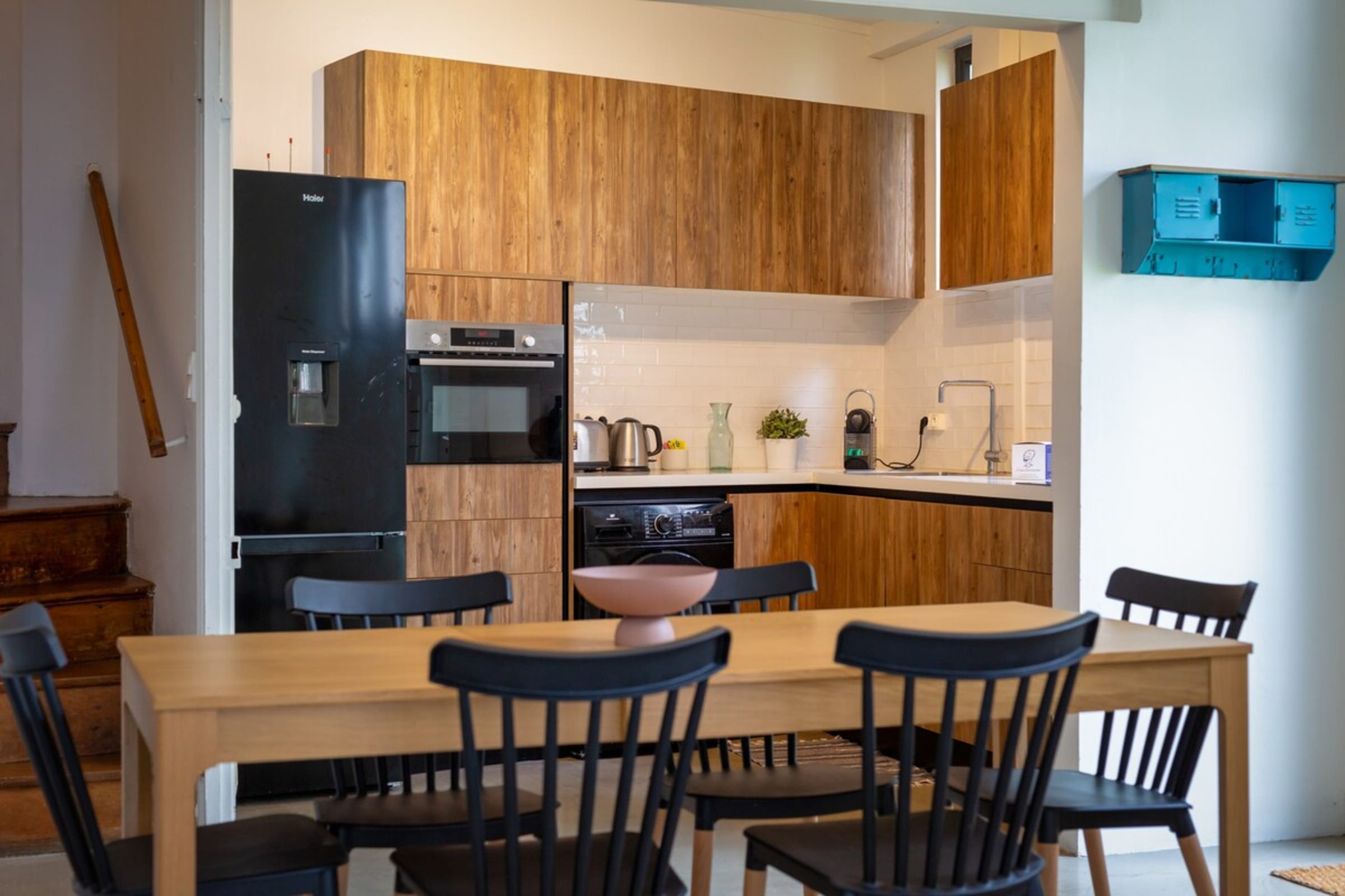 Au rez-de-chaussée, vous trouverez une chaleureuse pièce de vie avec salle à manger, salon équipé d’un canapé convertible, ainsi qu’une cuisine ouverte, moderne et entièrement équipée, incluant une machine Nespresso. Vous disposerez également d’une élégante salle de bain en marbre avec toilettes.