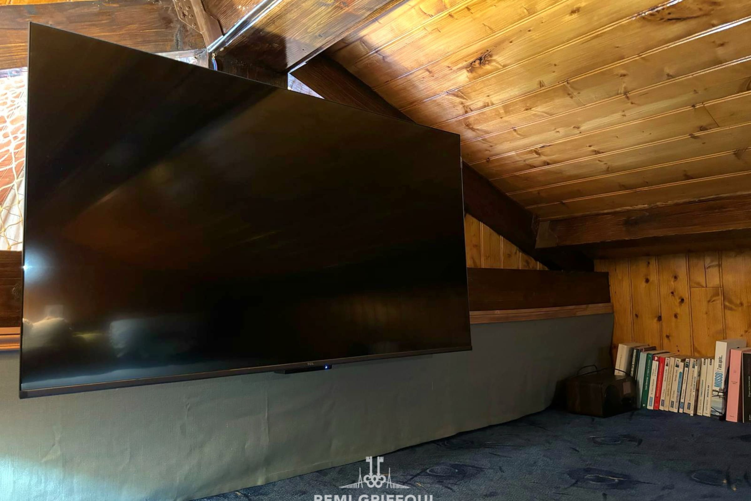 ✔ Espace détente en mezzanine avec télévision accessible par un escalier pentu