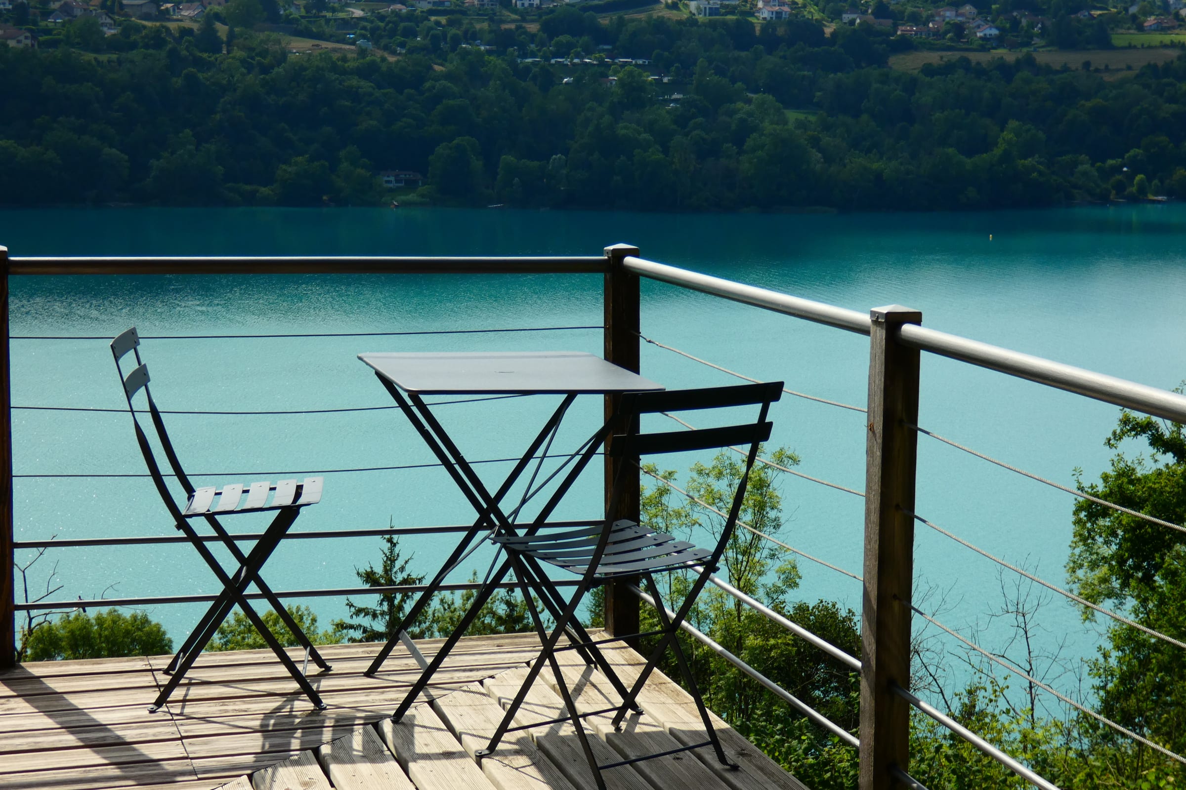Accroché à flanc de coteau, le chalet vous offre un panorama à 180 degrés sur le lac de Paladru, ses eaux turquoises et ses collines environnantes. Le balcon filant tout autour du chalet vous conduit sur la terrasse : à l’abri des regards, elle est équipée d’un spa dans lequel vous pourrez vous détendre en profitant de cette vue à couper le souffle.