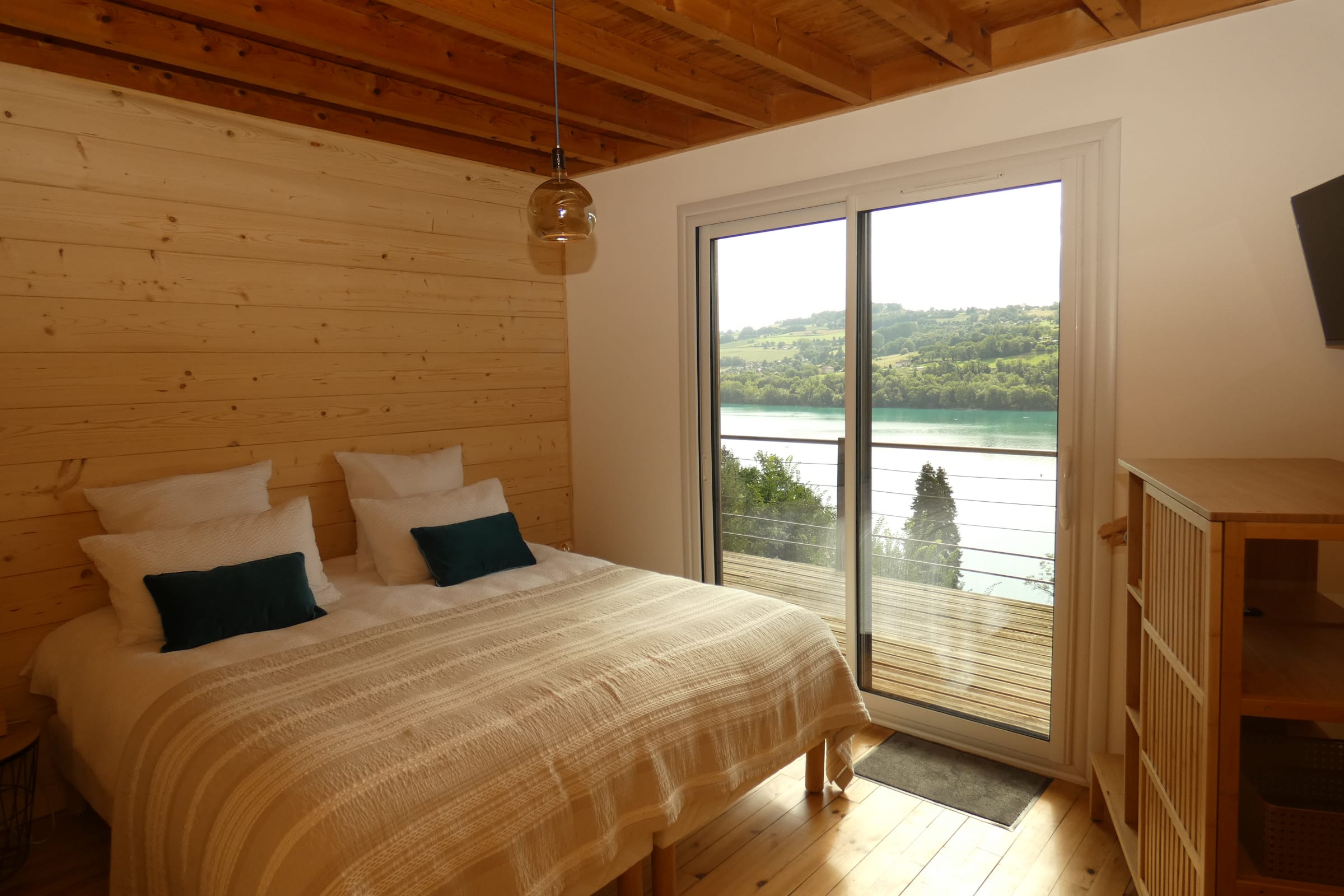 La chambre avec sa baie vitrée sur le lac dispose d'un couchage king size, un petit dressing, une TV et une climatisation. Enfin, le logement est complétée par une salle d’eau avec vasque, douche à l’italienne et machine à laver.