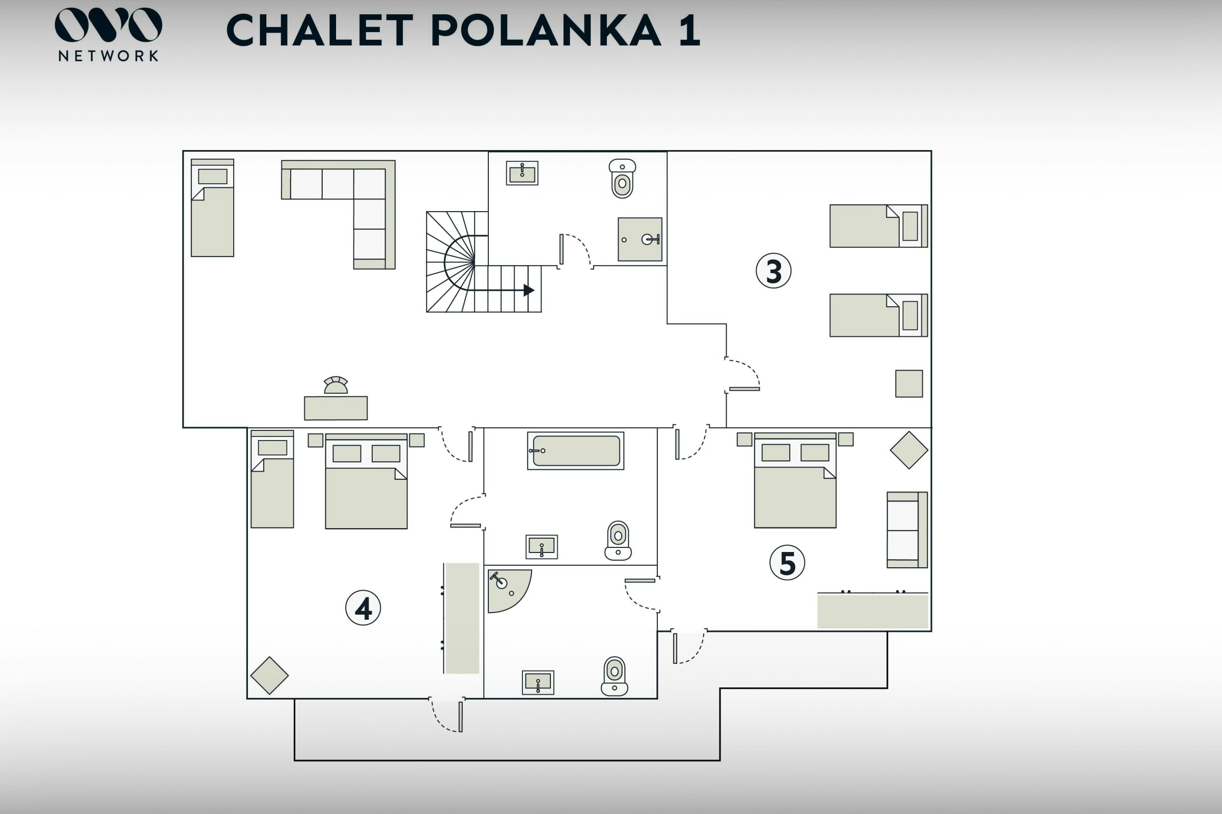 Le chalet Polanka est une propriété OVO Network. Il peut accueillir confortablement 12 personnes (8 adultes) au sein de 5 chambres agrémentées de 5 salles de bains: idéal pour plusieurs familles ou un grand groupe d’amis.