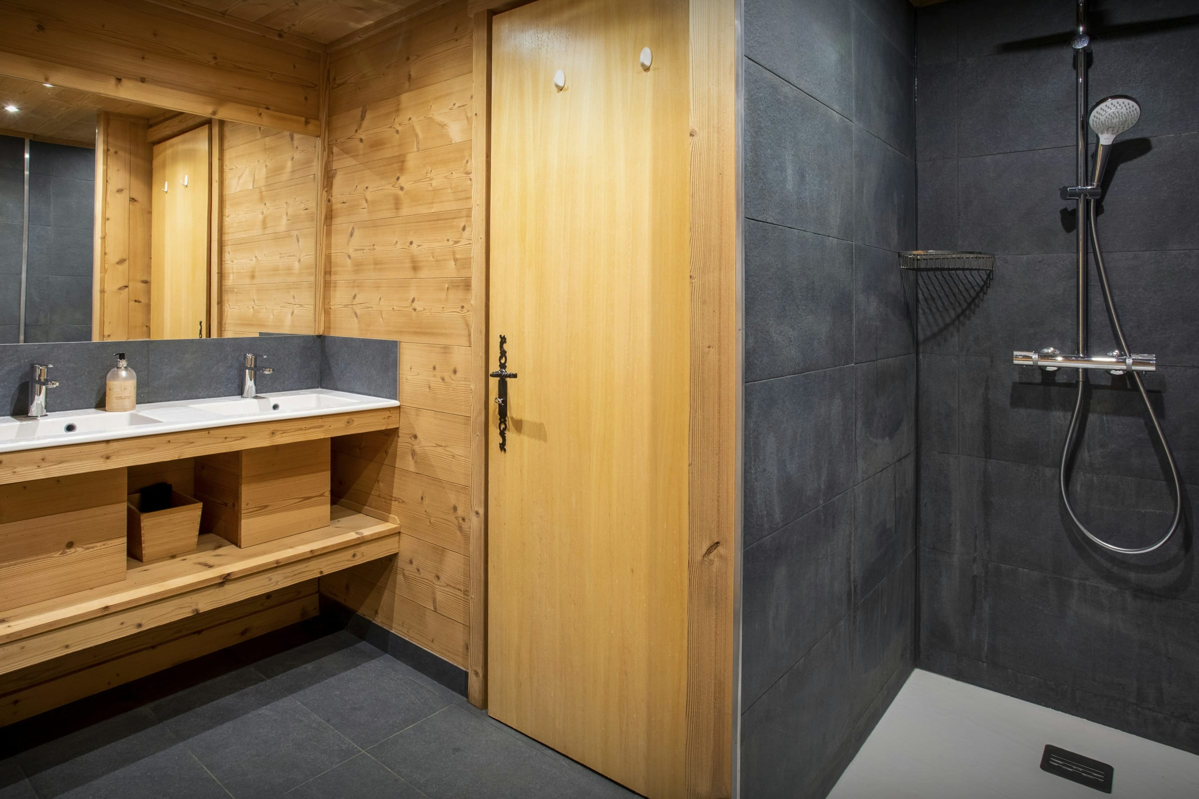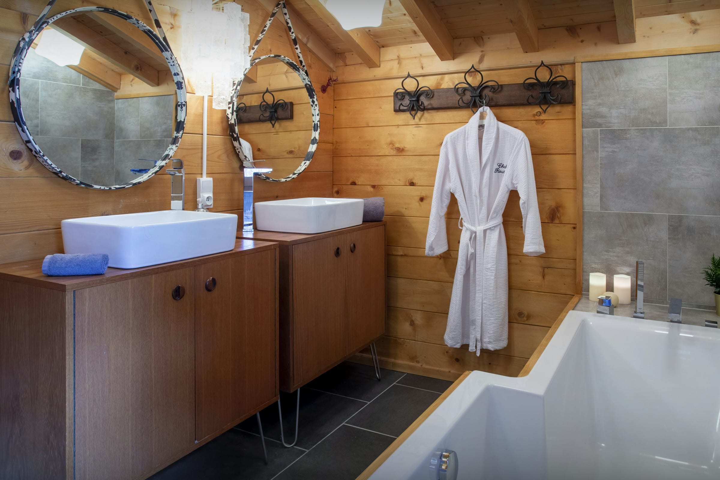 Ce chalet compte trois salles de bain/d’eau, mais une seule chambre comprend une salle de bain attenante. L’une des salles d’eau qui se trouve dans le prolongement du séjour donne sur la terrasse avec jacuzzi. Elle sera donc très pratique pour vous rincer avant d’entrer dans le bain bouillonnant.