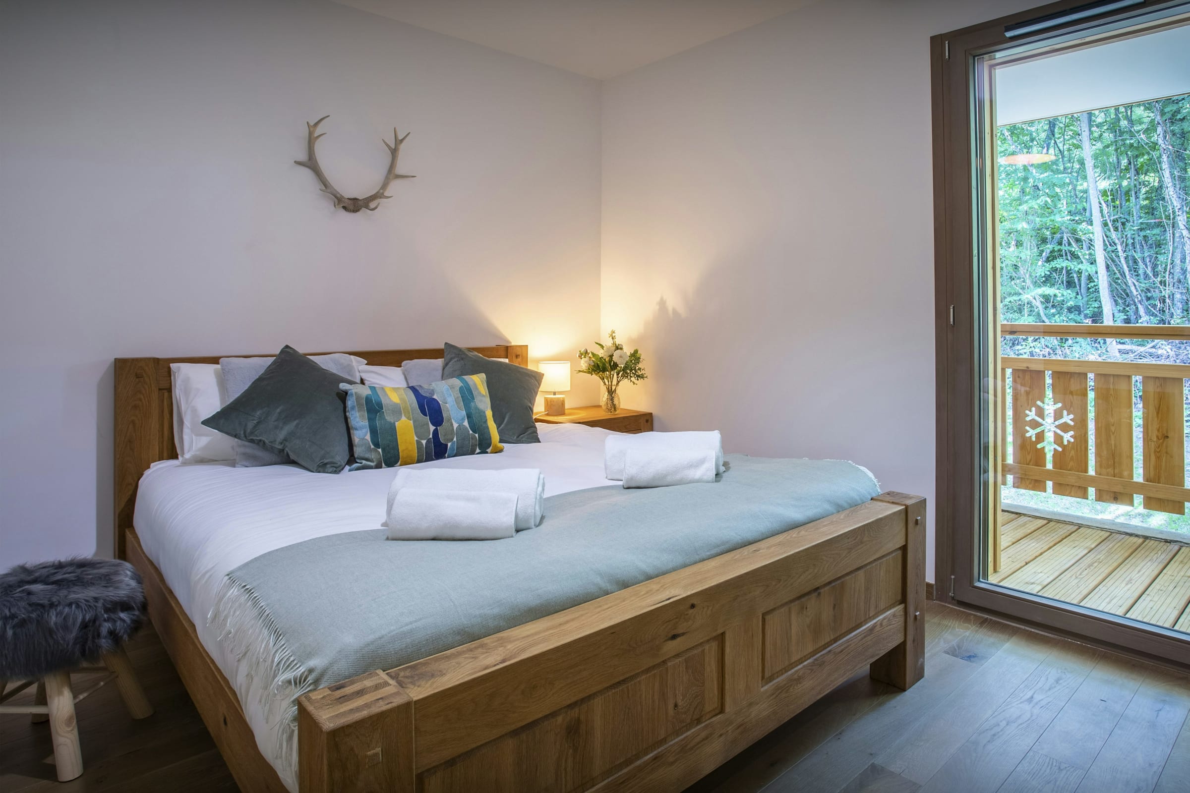 Parce qu’il est situé au troisième étage d’un immeuble, dans un coin tranquille de la vallée de l’Abondance, sa terrasse offre des vues splendides sur la forêt et les montagnes alentour.
