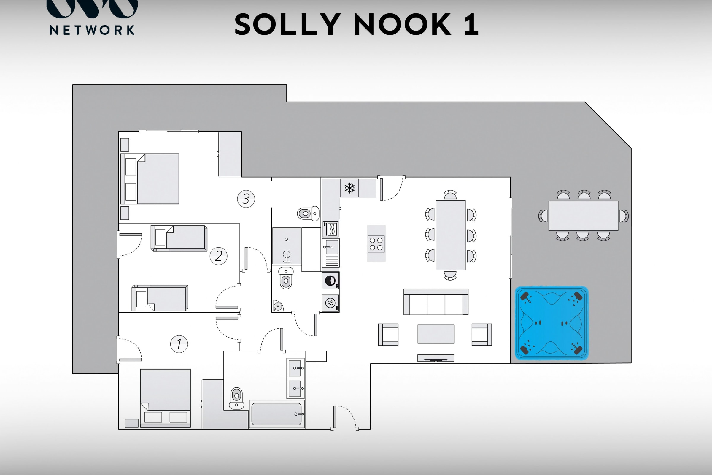 Solly Nook est une propriété OVO Network. C'est un appartement cossu pour huit personnes (6 adultes max), avec trois chambres et deux salles de bain. Le chalet est aussi adhérent au Multipass qui donne accès à des activités à prix réduits en été.