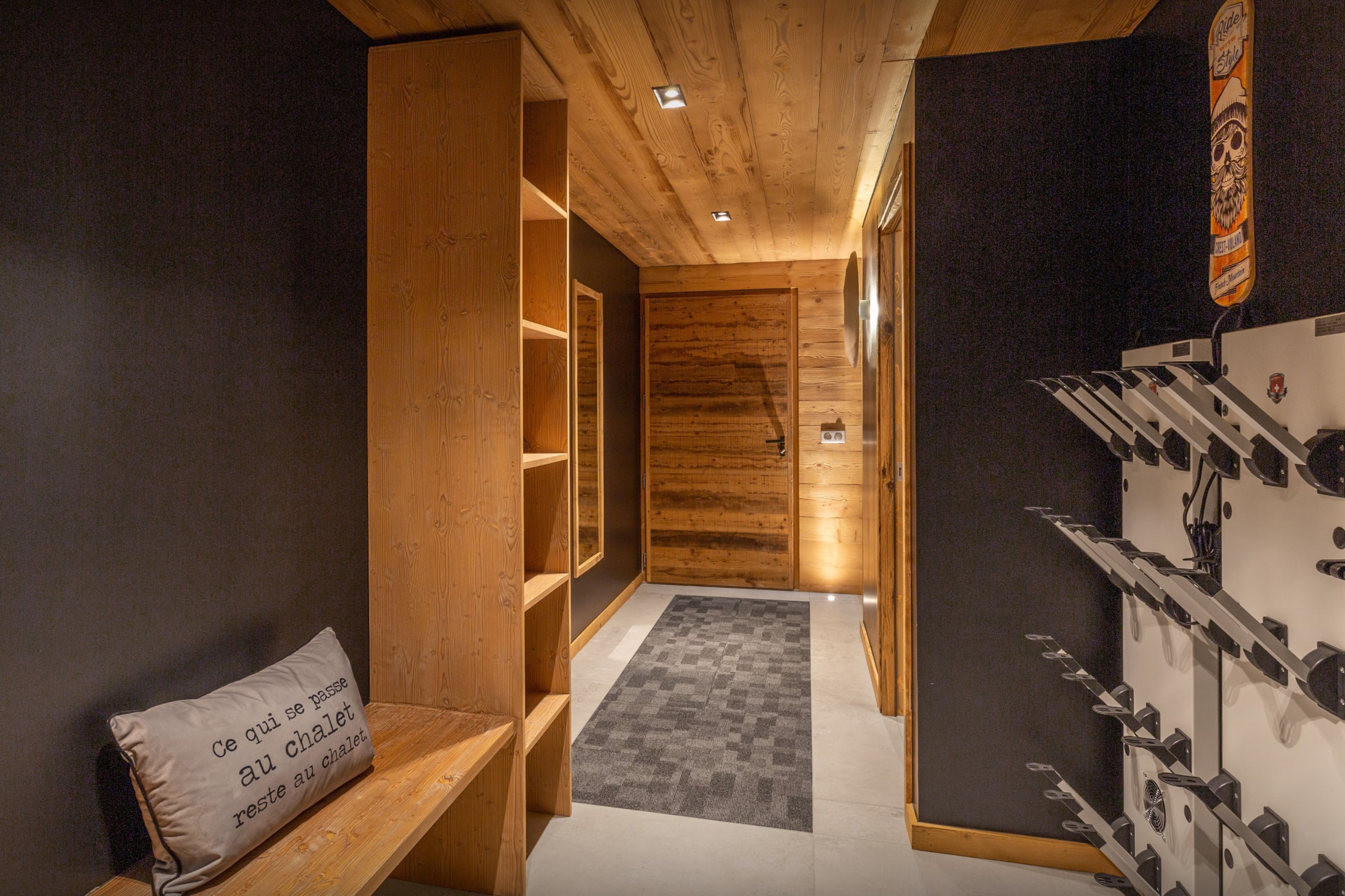 Local à skis et cheminée