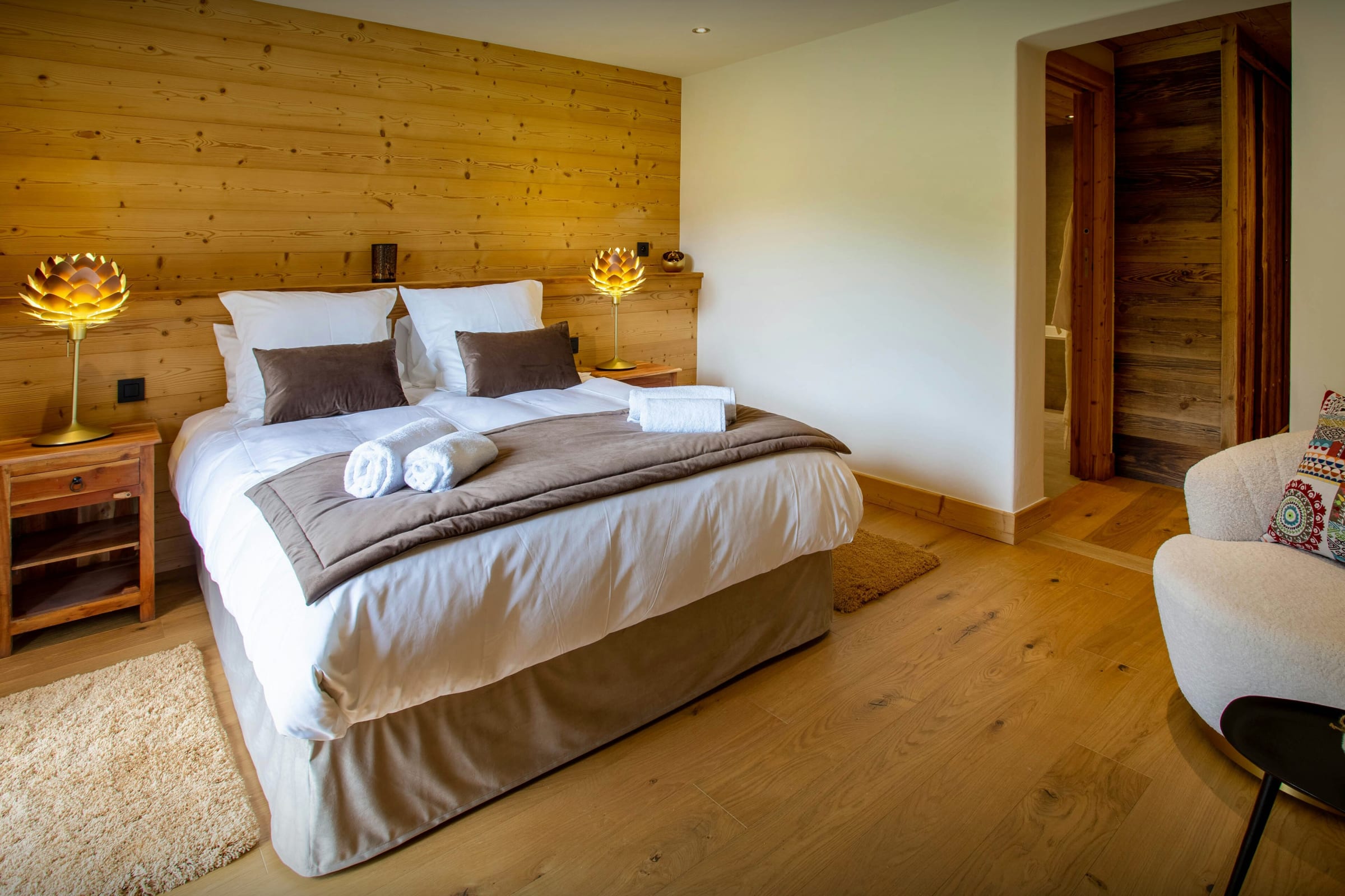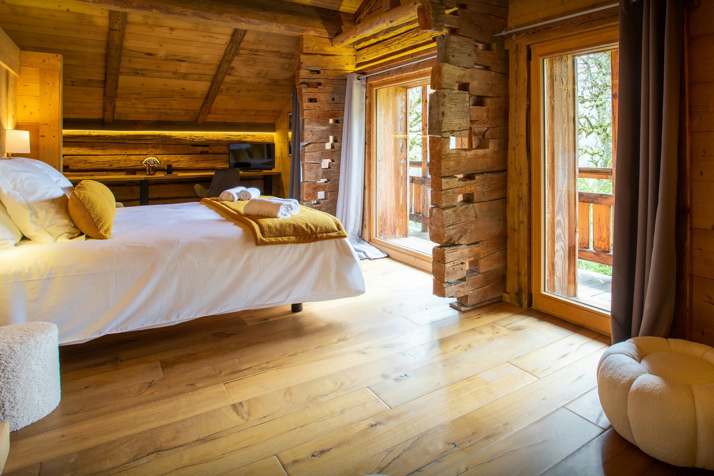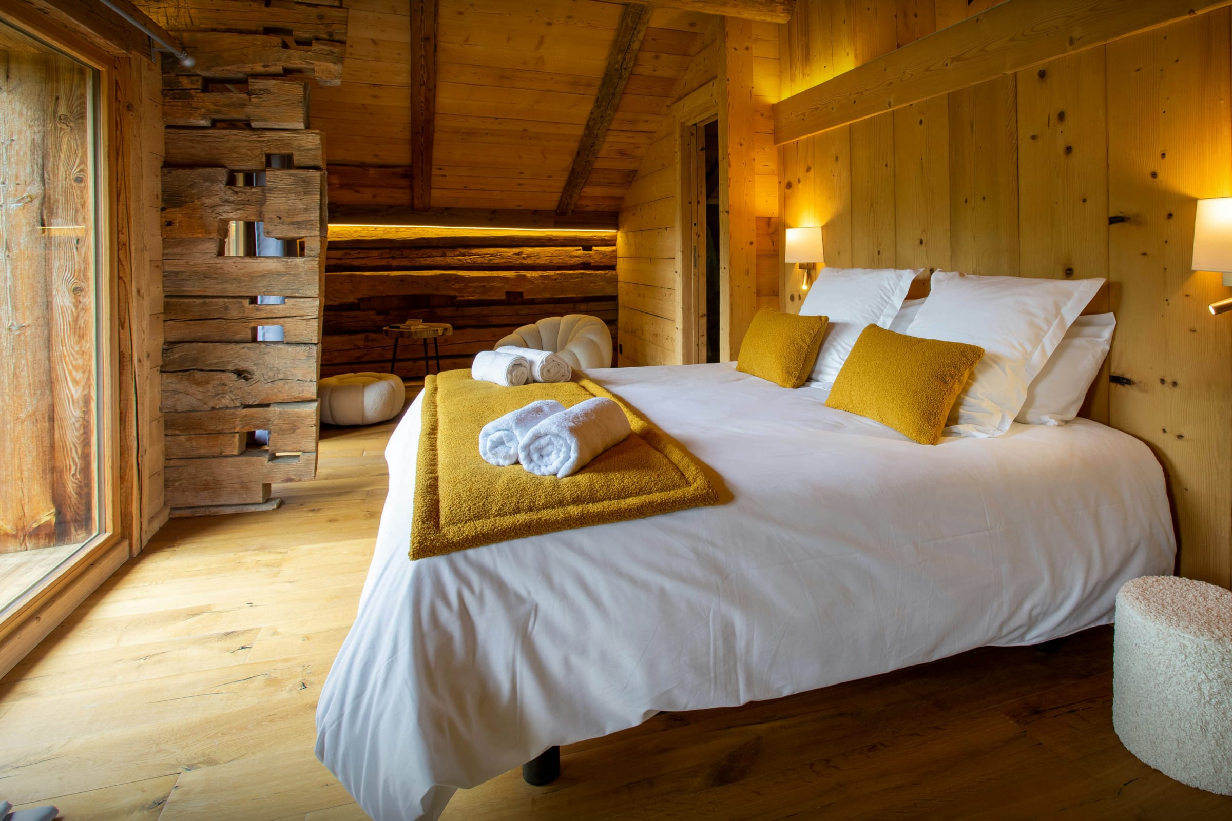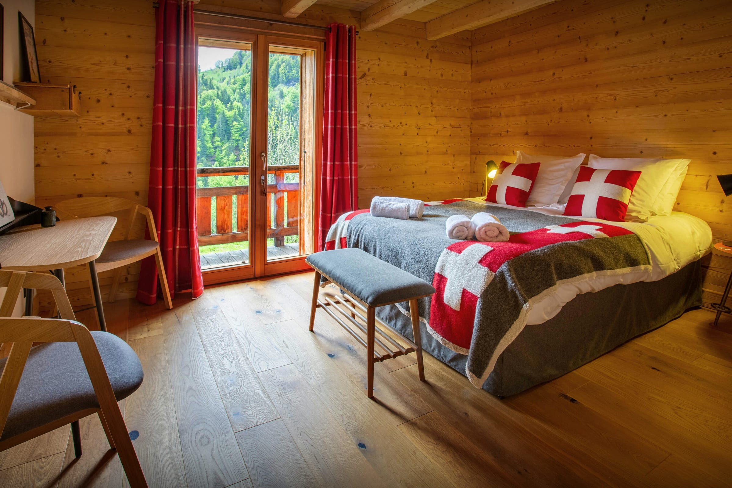 Les chambres sont joliment aménagées. Comptez trois chambres pour deux et une chambre à lits superposés, chacune équipée de sa propre salle de bain ou d’eau (pas forcément attenante). La dernière chambre, qui se trouve dans la suite au dernier étage, est magnifique. Du lit, admirez la vue imprenable, encore plus magique depuis le balcon.