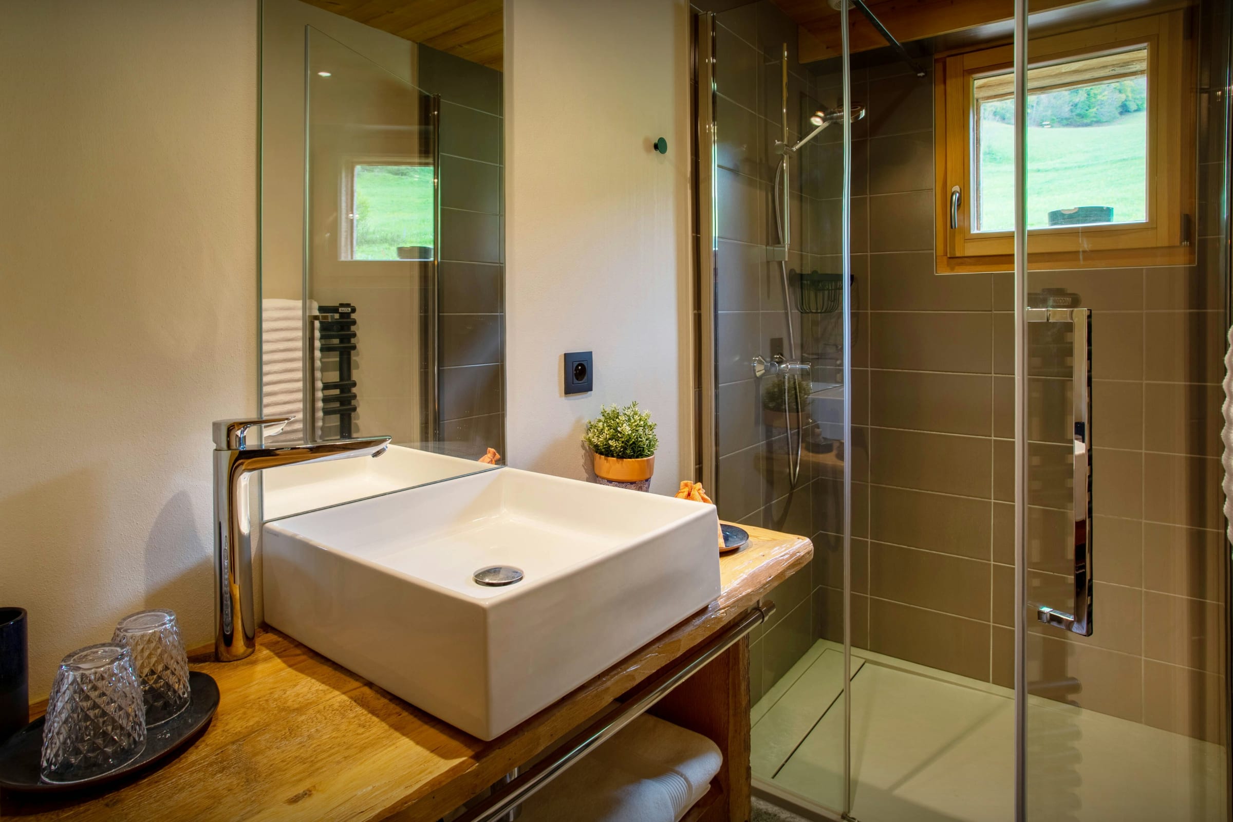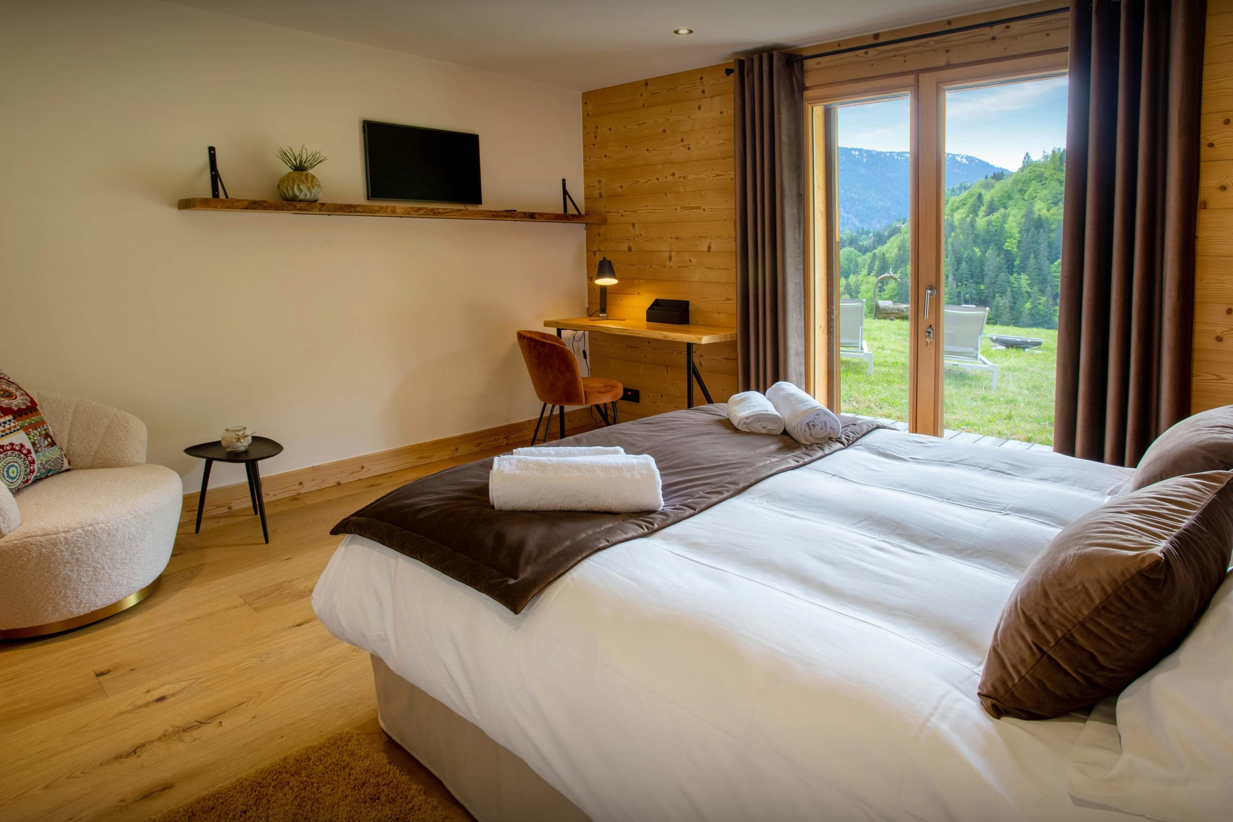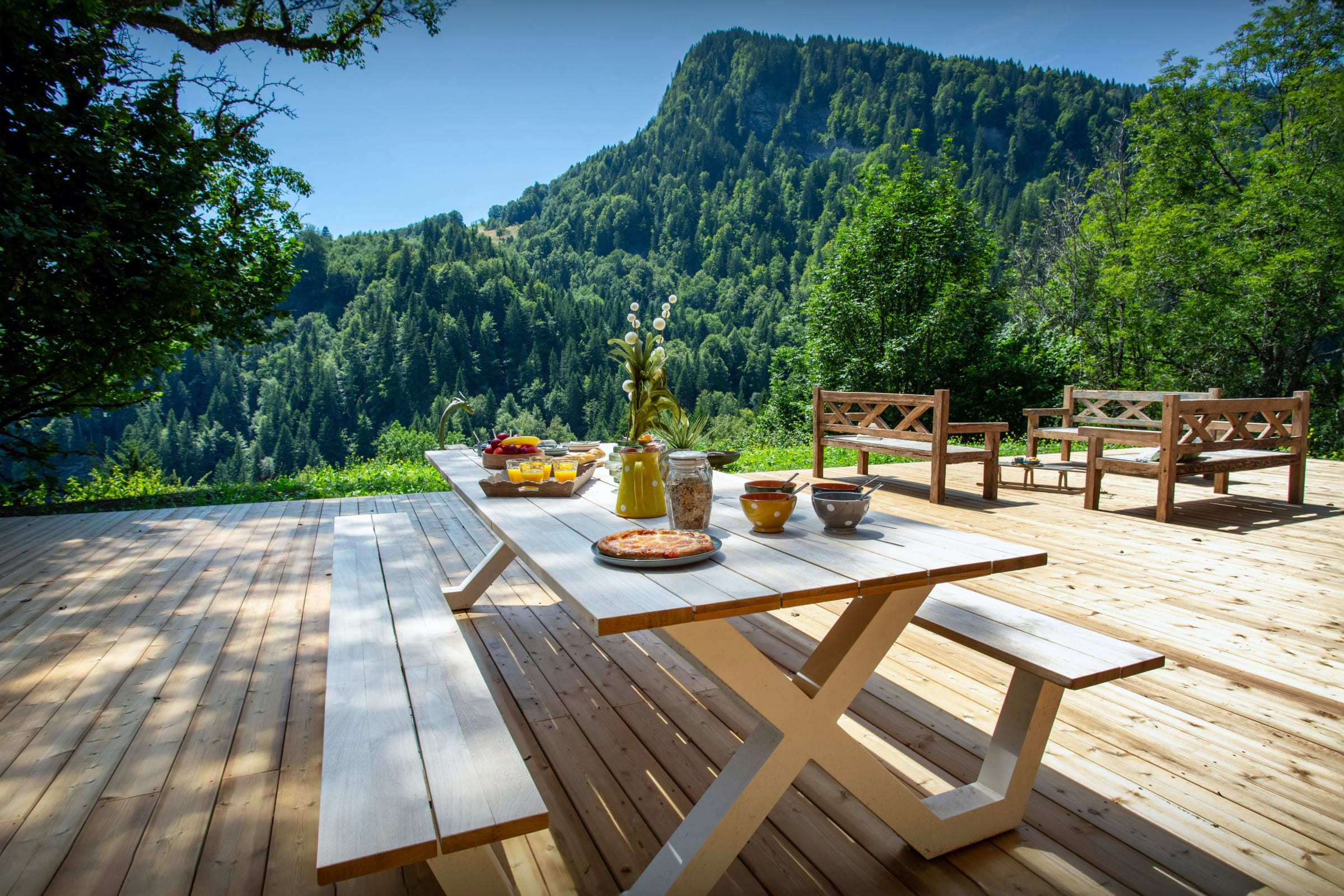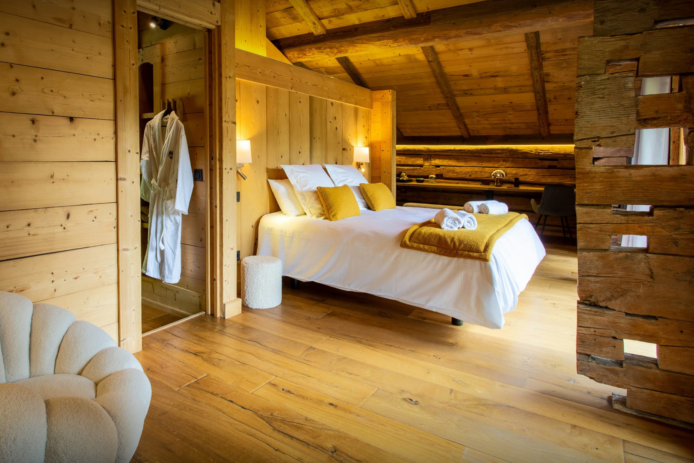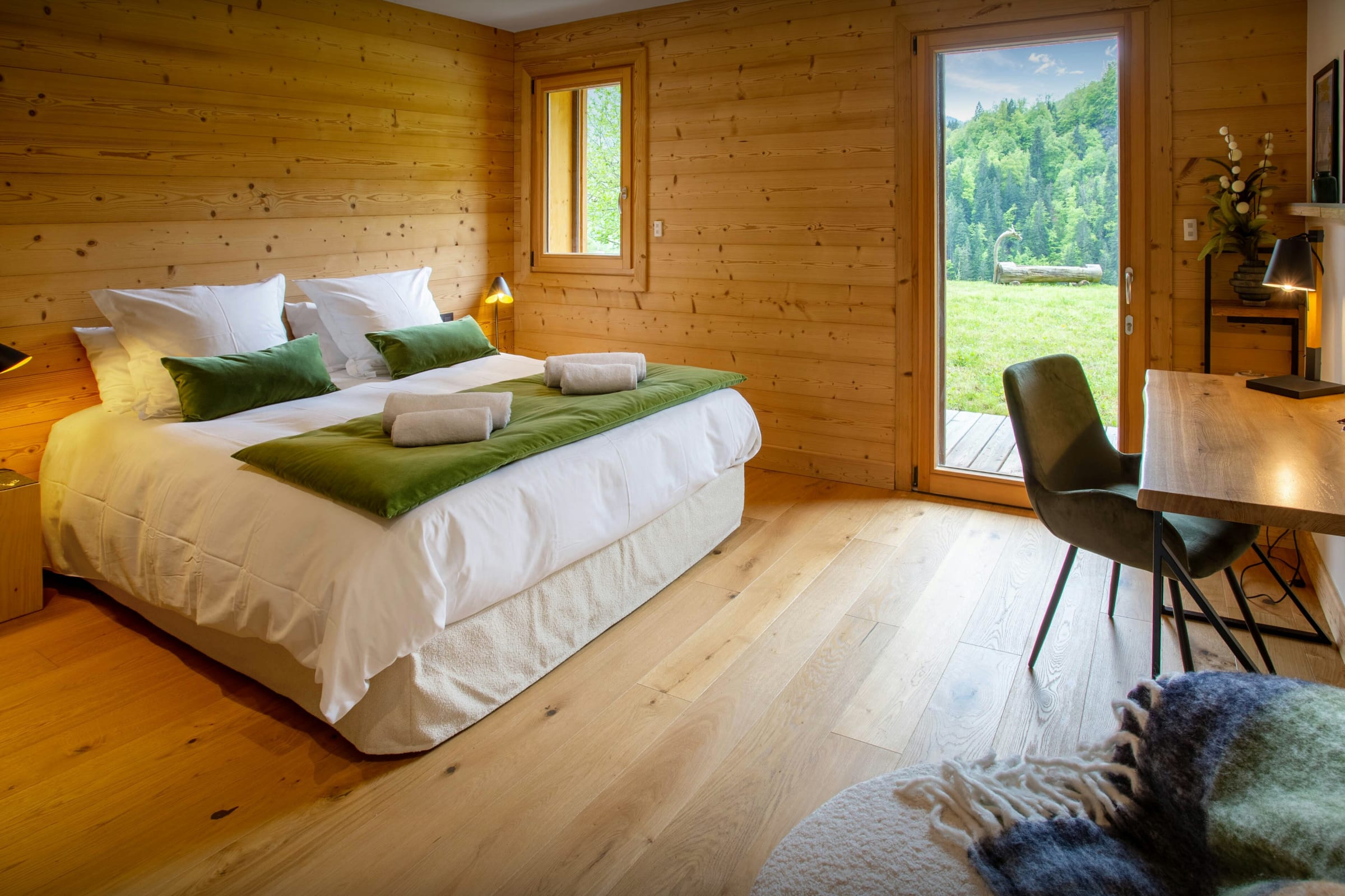 Les chambres sont joliment aménagées. Comptez trois chambres pour deux et une chambre à lits superposés, chacune équipée de sa propre salle de bain ou d’eau (pas forcément attenante). La dernière chambre, qui se trouve dans la suite au dernier étage, est magnifique. Du lit, admirez la vue imprenable, encore plus magique depuis le balcon.