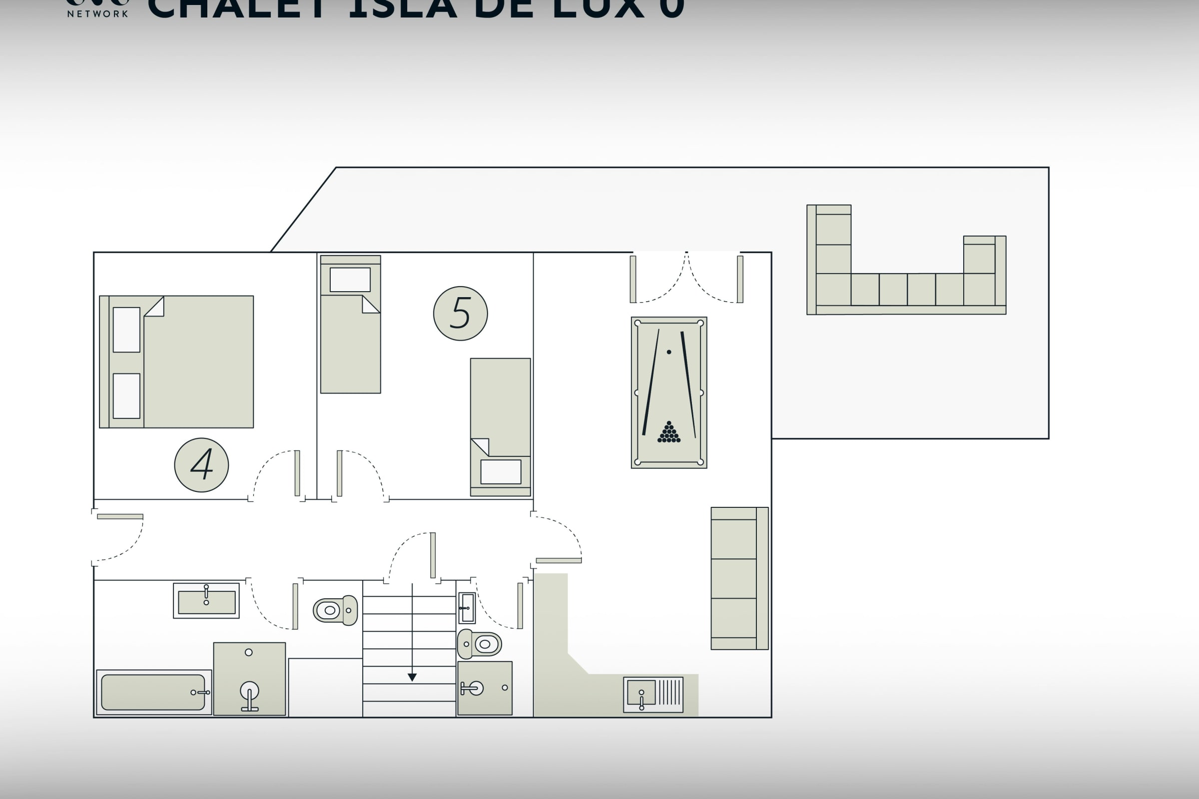 Le Chalet Isla de Lux est une propriété OVO Network. C’est un logement spacieux pour 12 personnes, aménagé sur quatre étages, comptant six chambres et cinq salles de bain.