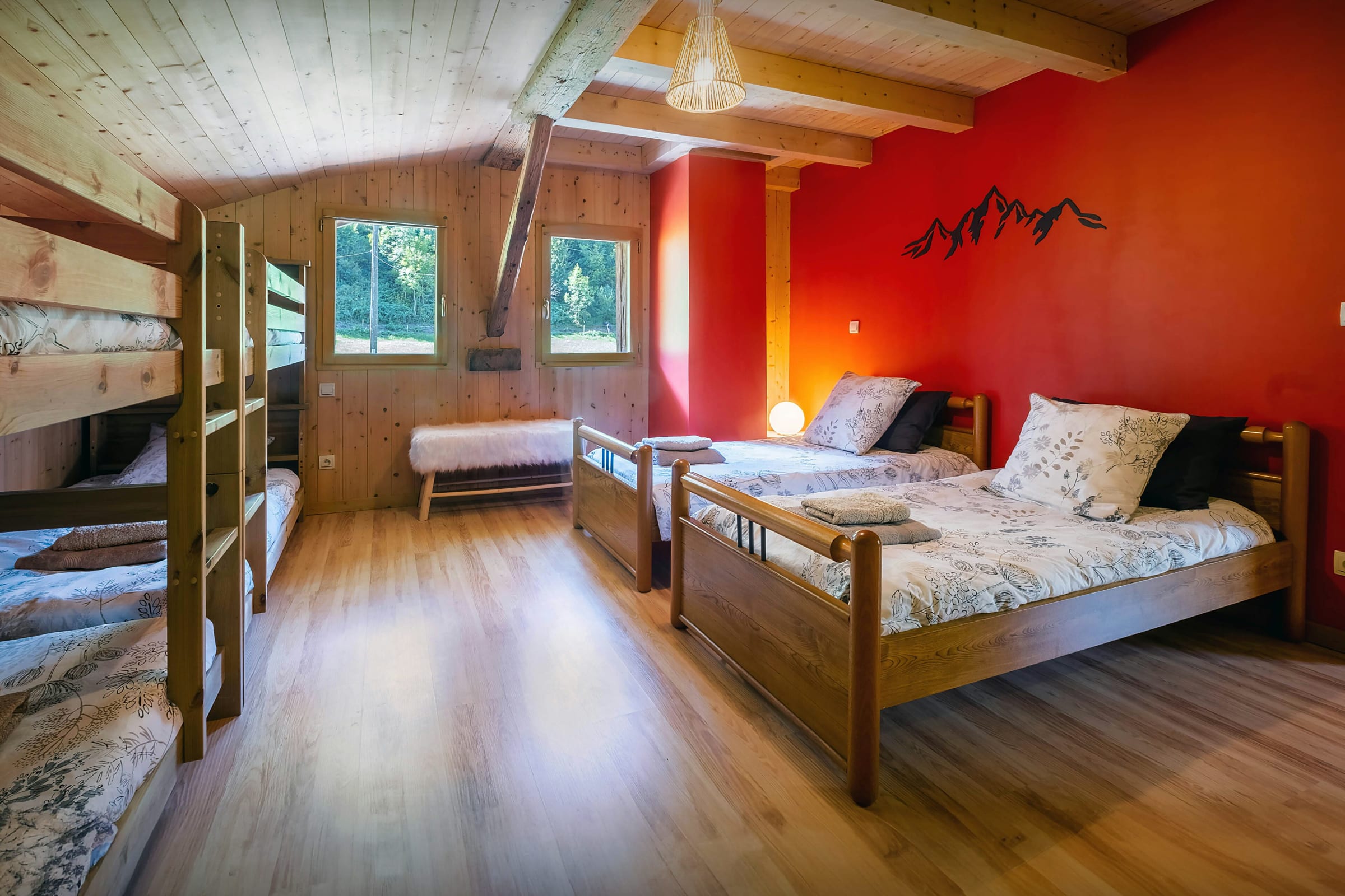 L’étage supérieur compte quatre chambres et trois salles d’eau, dont deux qui sont privatives. Le dortoir pour six personnes peut plaire à un groupe d’enfants, mais il peut tout aussi bien convenir à une famille.
