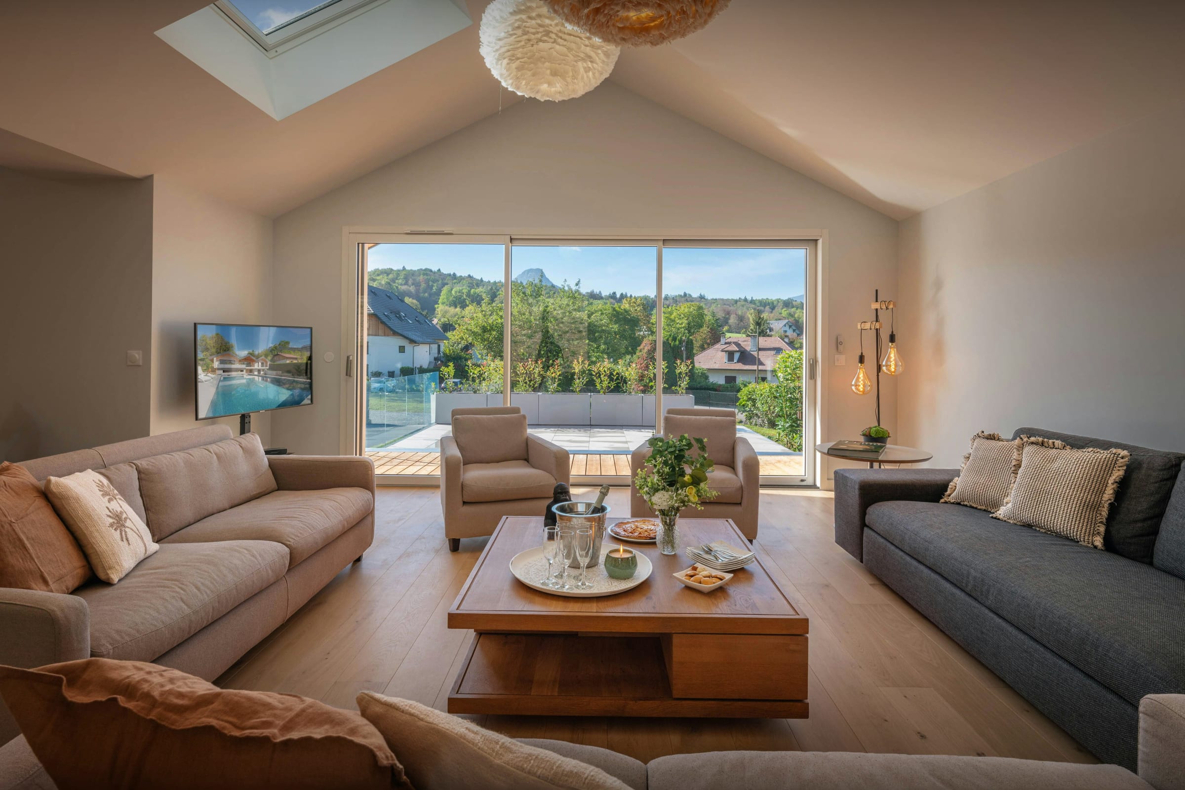 De par son emplacement privilégié, elle offre un accès facile au lac d’Annecy et à son parcours de golf, au charmant village de Talloires, et à la prodigieuse réserve naturelle du Roc de Chère. Le centre historique d’Annecy, à seulement 11km, peut être rejoint à vélo en longeant la rive du lac.