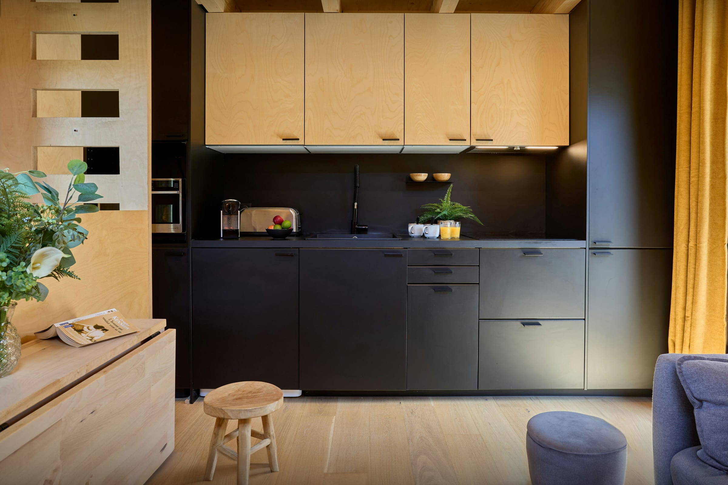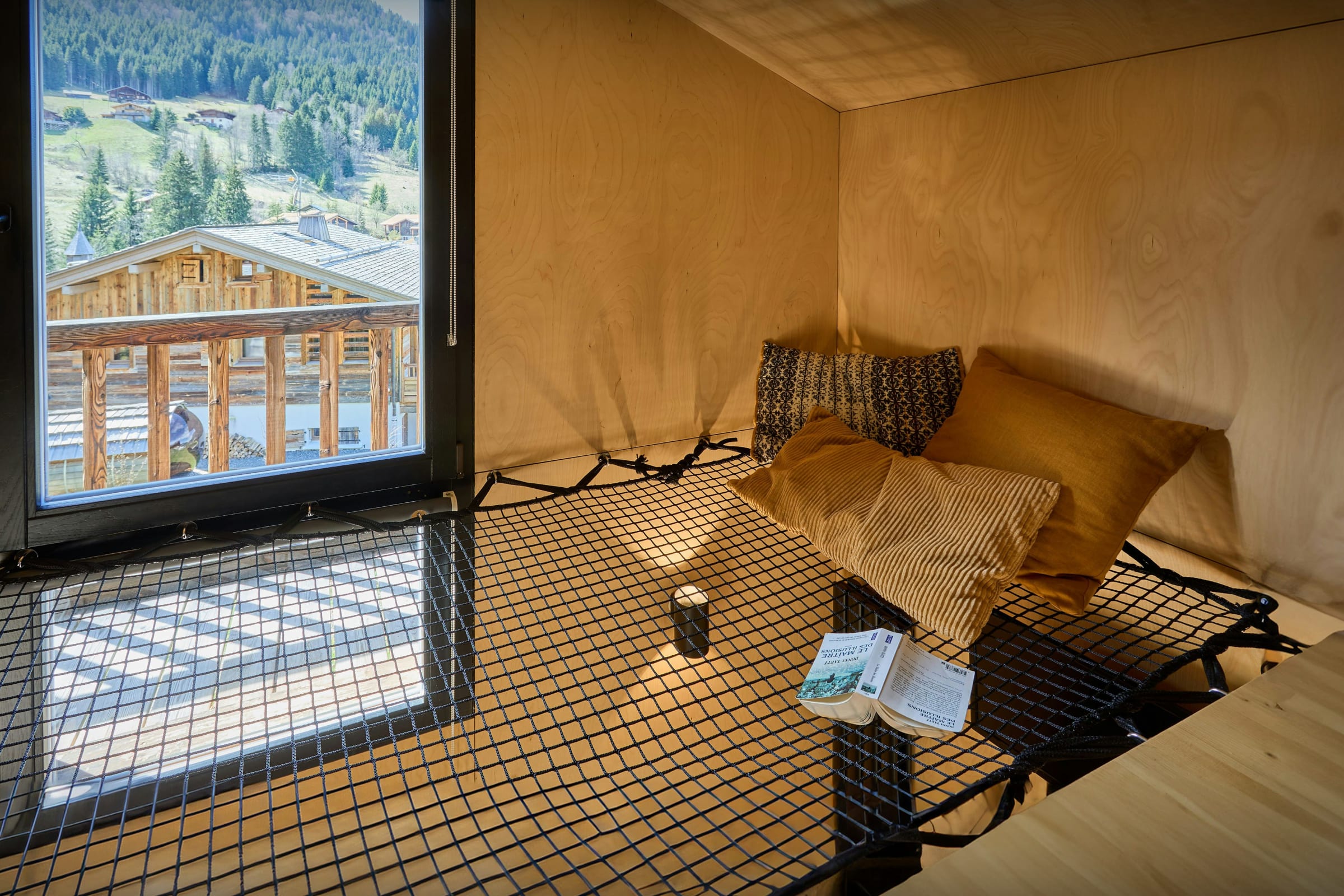 Le Chalet Sideflip n’est pas adapté aux jeunes enfants et ne propose par conséquent aucun équipement Cool for Kids. Remarque : l’accès à la chambre aménagée sur la mezzanine se fait par une échelle non sécurisée.