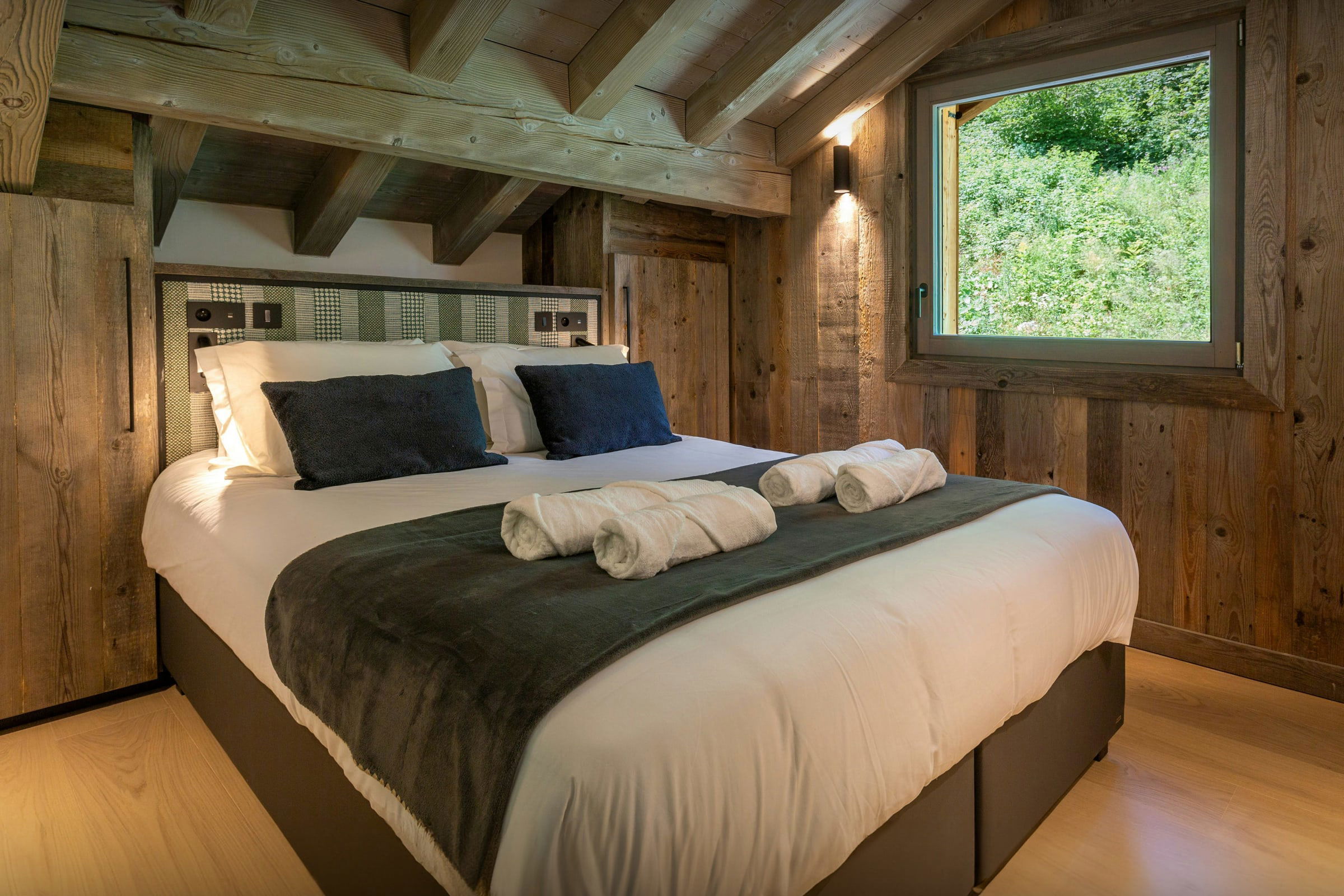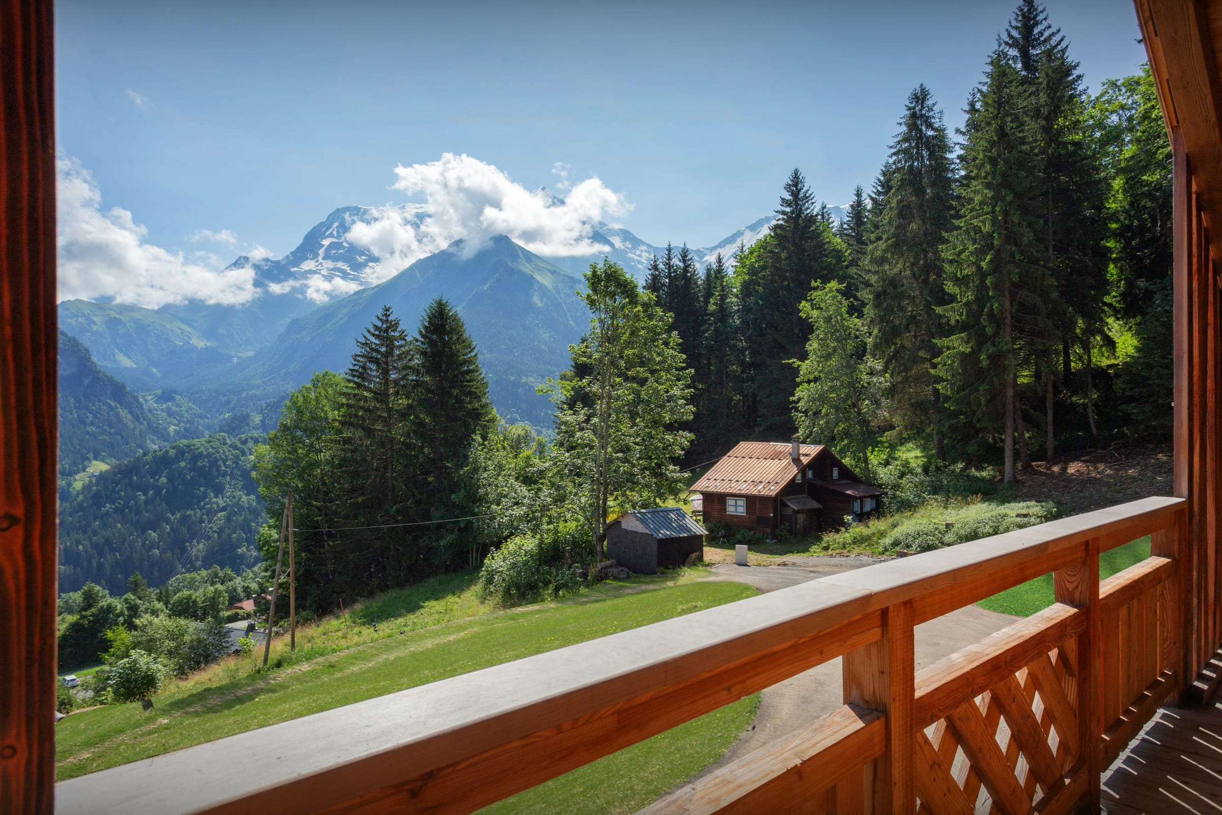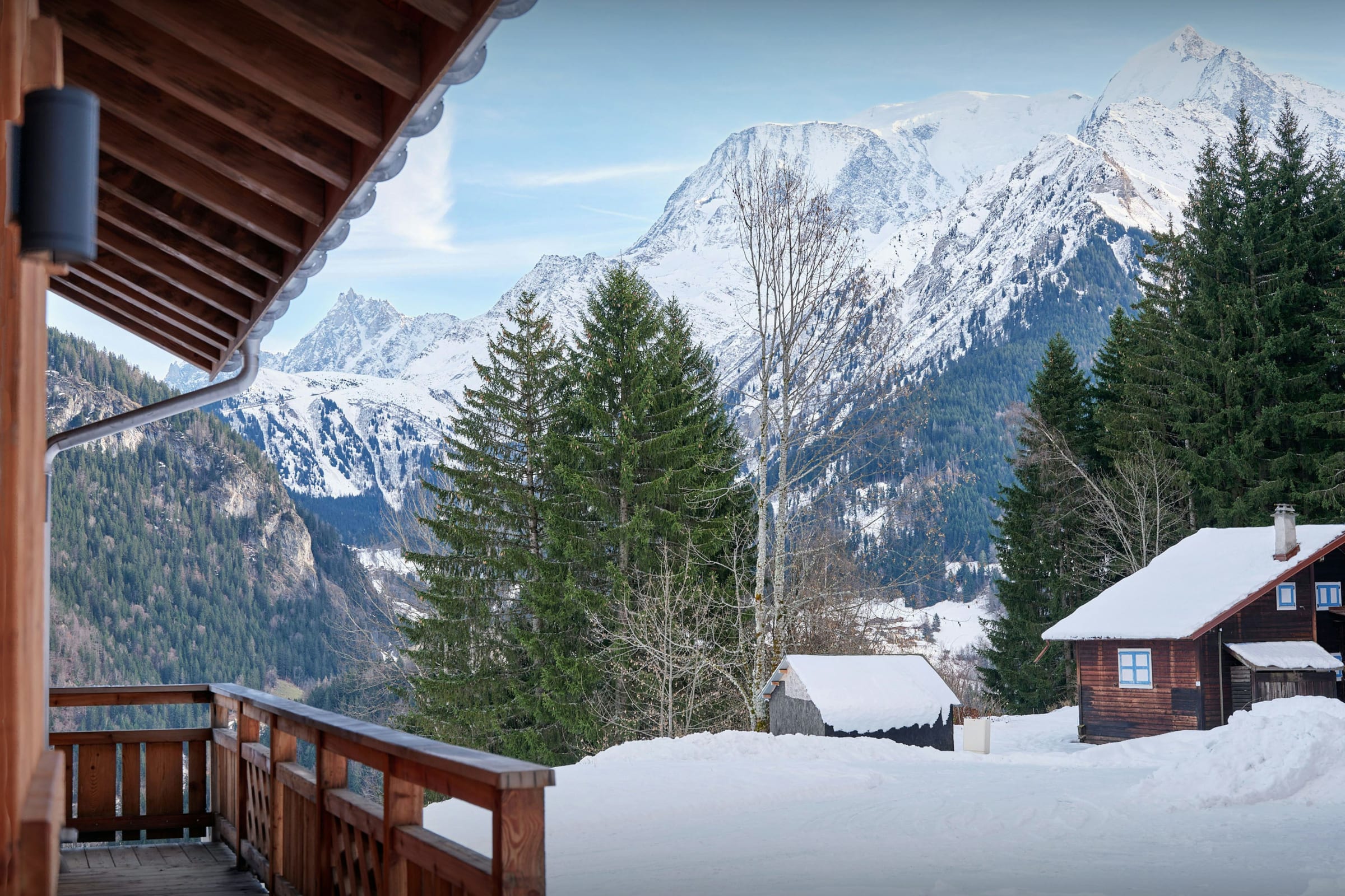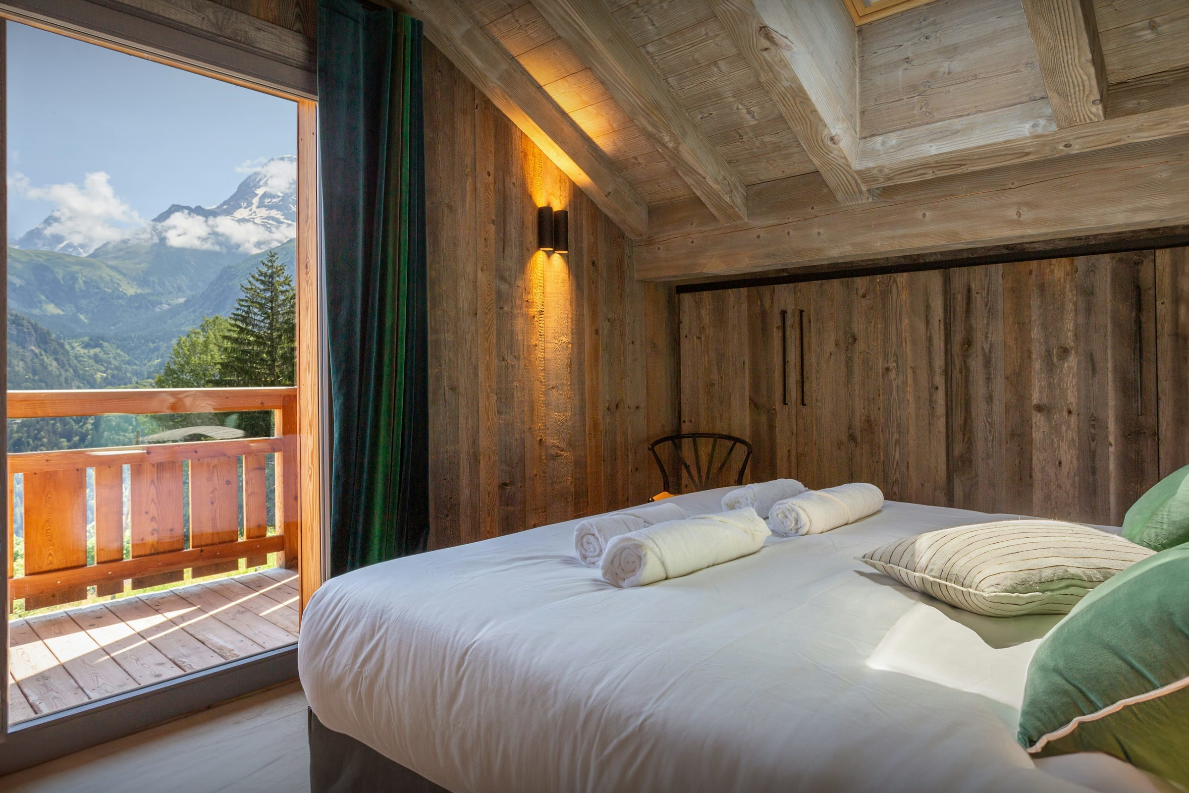 L'étage du haut compte trois chambres doubles supplémentaires, dont l’une avec sa propre salle de douche, et une autre qui peut être convertie en chambre jumelle. Deux de ces chambres donnent sur un balcon, qui bénéficie d’une vue imprenable sur le massif du Mont-Blanc !