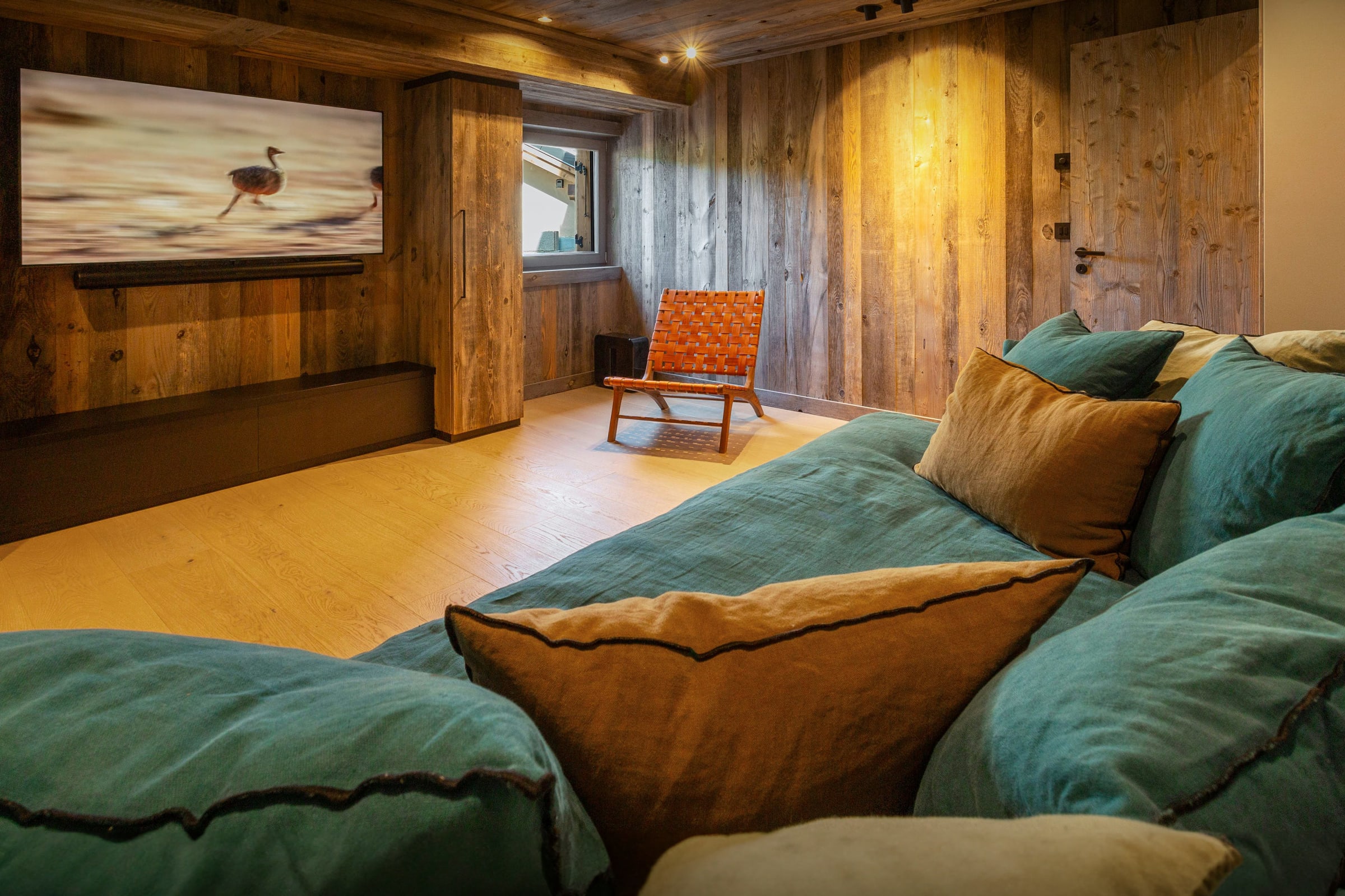 Chacune des trois chambres du rez-de-chaussée comprend sa propre salle de douche privée. Il s’agit de deux chambres doubles et d’un dortoir pour quatre. À ce niveau se trouve également une vaste salle de jeux avec télévision.