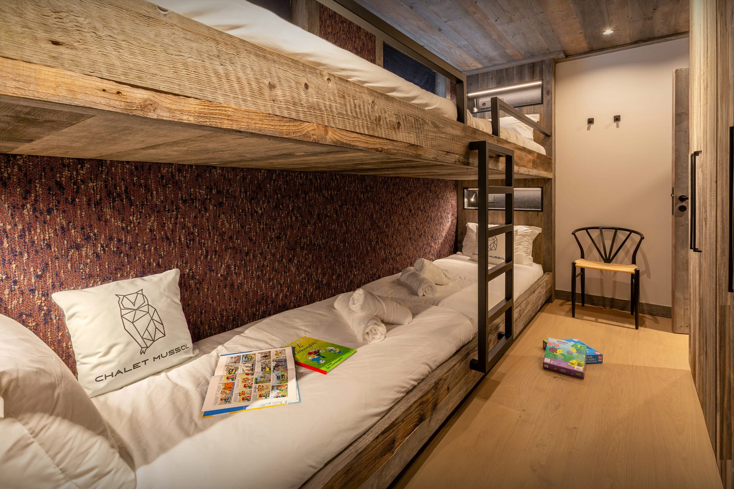 Le Chalet Mussol est une propriété de trois étages pour 14 personnes, qui compte six chambres et cinq salles de bains.
