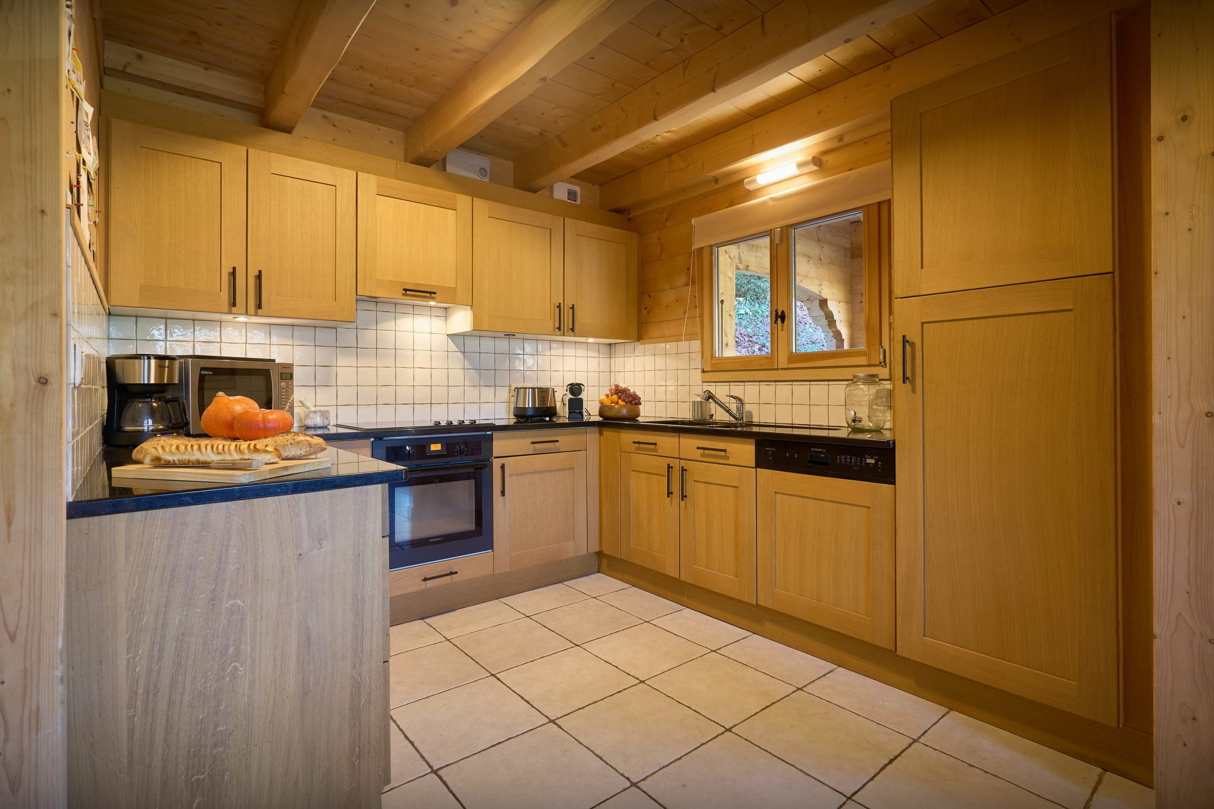 La pièce de vie ouverte profite pleinement du panorama, grâce à trois portes-fenêtres ouvrant sur une terrasse panoramique aménagée. Elle compte un grand salon avec télévision et poêle à bois, et une agréable salle de lecture. La cuisine compacte possède tous les équipements dont vous aurez besoin, dont un lave-vaisselle.