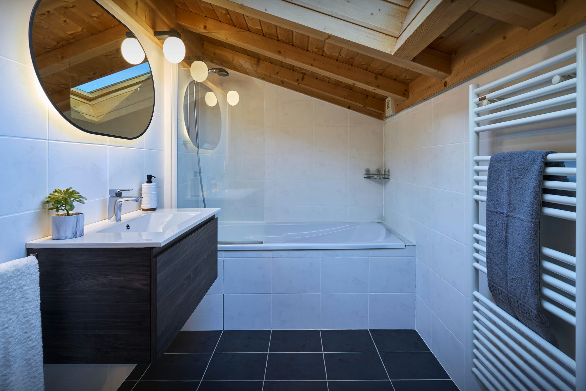 Grâce à son splendide cadre alpin, son jacuzzi, son sauna et plusieurs terrasses spacieuses, ce chalet est un formidable pied-à-terre pour découvrir cette région. Il compte deux chambres doubles avec balcon, une troisième avec salle de douche attenante, et une chambre équipée de deux lits simples. Vous trouverez une salle de bains à l’étage supérieur et une autre douche près du sauna, au rez-de-jardin.
