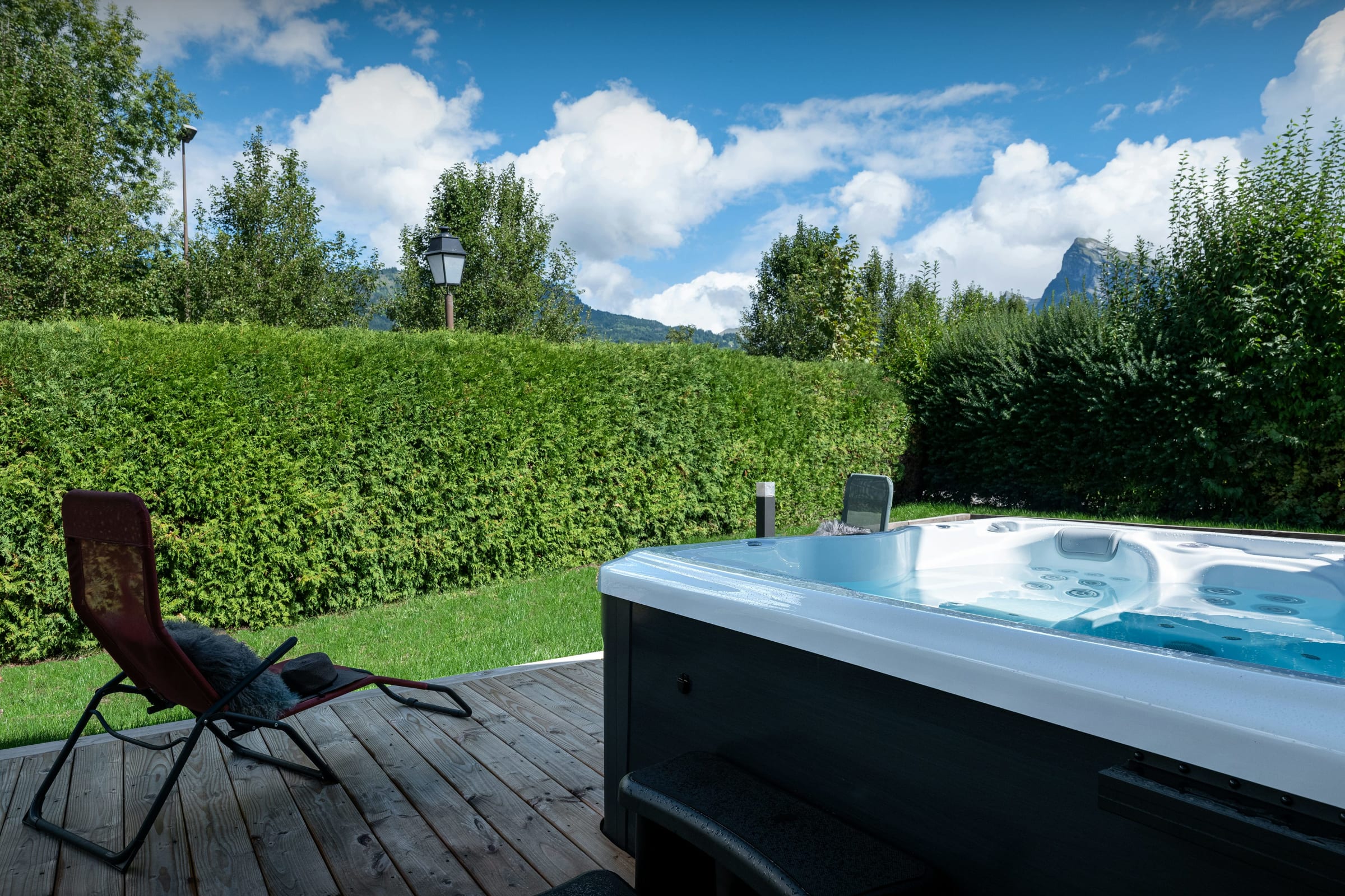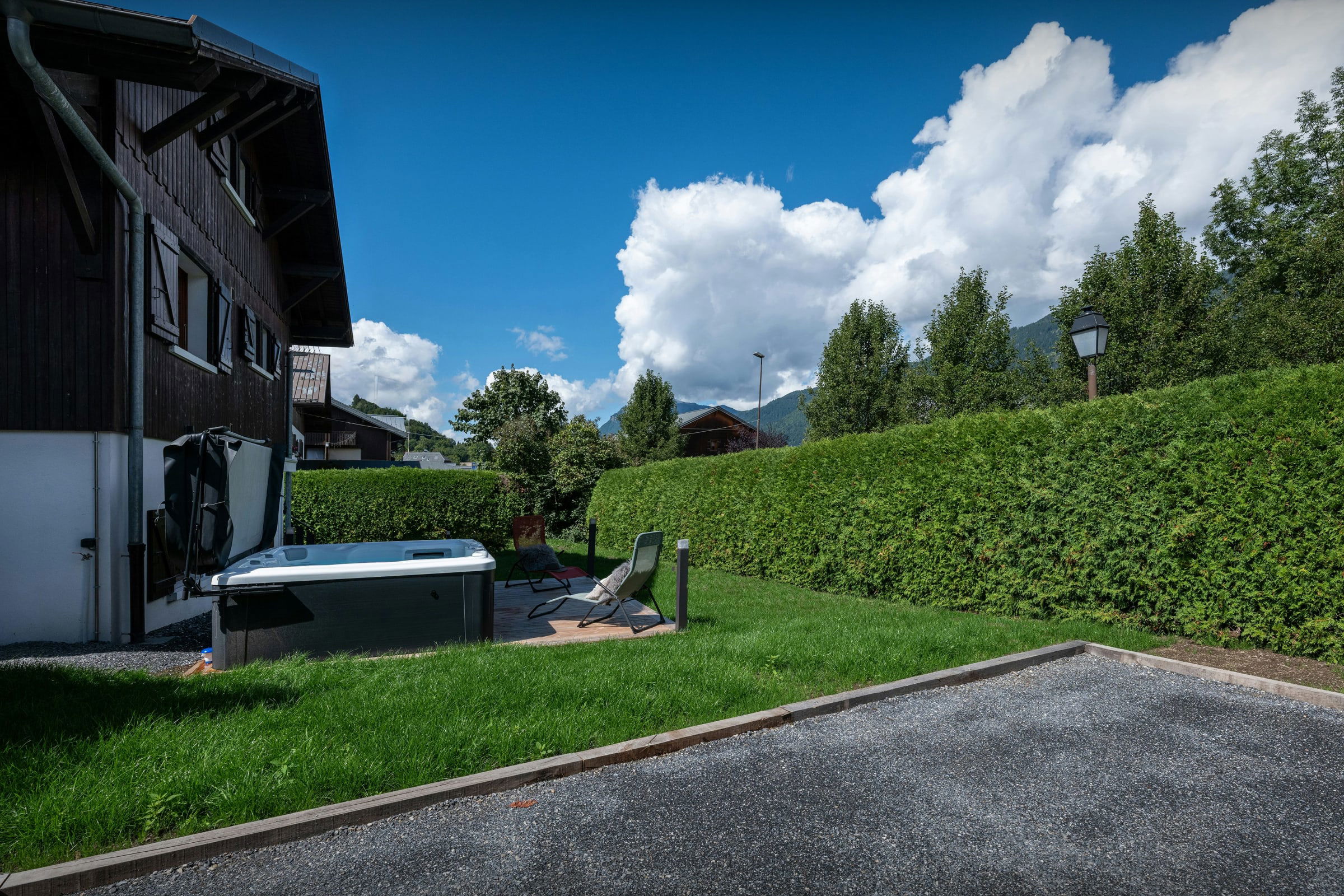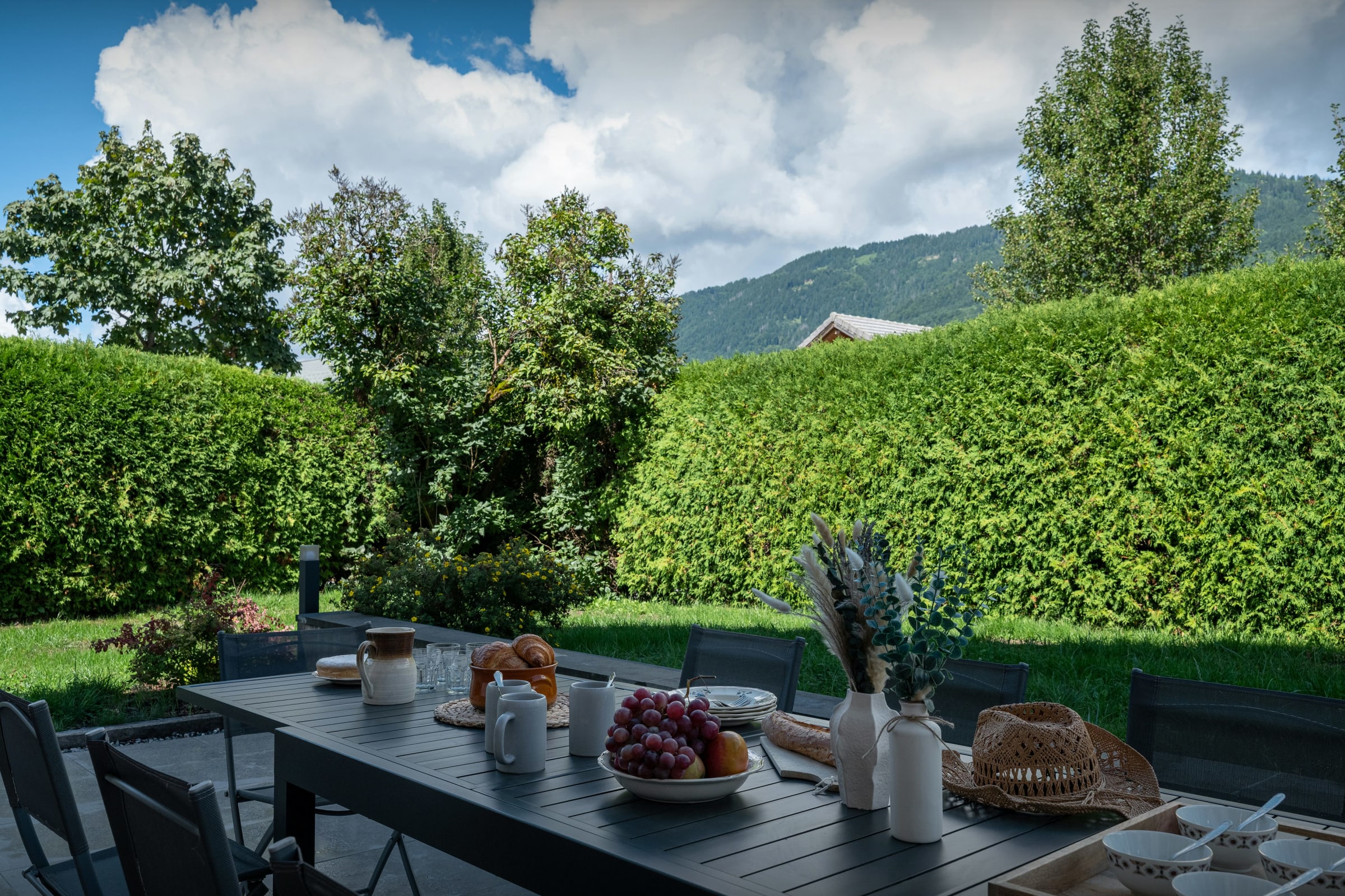 Le chalet est entouré d'un grand jardin sécurisé, qui s'étend tout autour de la propriété et permet aux enfants de se dépenser. Vous y trouverez également une deuxième terrasse, avec une table pour huit personnes, parfaite pour les repas en plein air.