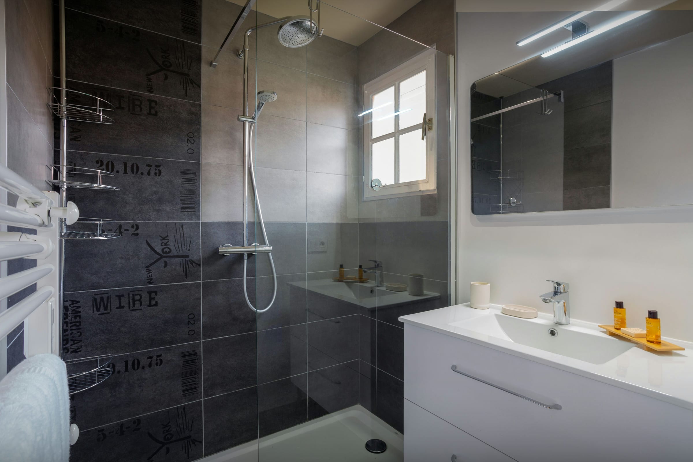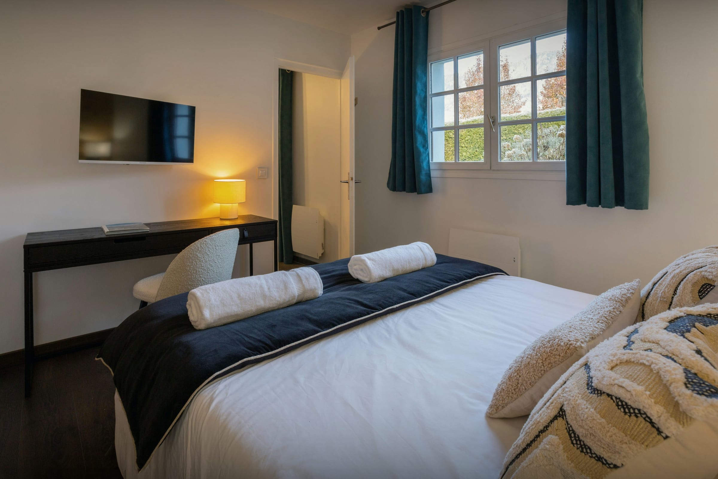 La propriété comprend quatre chambres, réparties sur ses trois étages. Il s’agit d’une chambre double avec salle de douche privative, d’une autre avec un bureau et une télévision, et d’une troisième chambre double dotée d'un lit simple supplémentaire et d'un lavabo. Enfin, un dortoir avec trois lits simples est aménagé sous les combles. Les chambres du dernier étage se partagent une grande salle de douche et des toilettes séparées. Le premier étage dispose de toilettes indépendantes. Le rez-de-chaussée comprend une salle de douche avec toilettes.