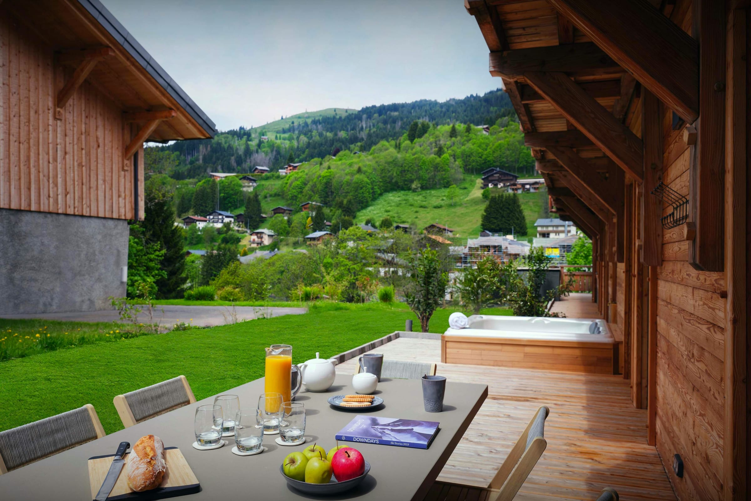 La vaste terrasse est très bien orientée pour profiter du soleil et de l’air alpin. Elle est aménagée avec une seconde table à manger, des fauteuils de bronzage, et un jacuzzi, qui sera certainement le point fort de votre séjour dans les Alpes.