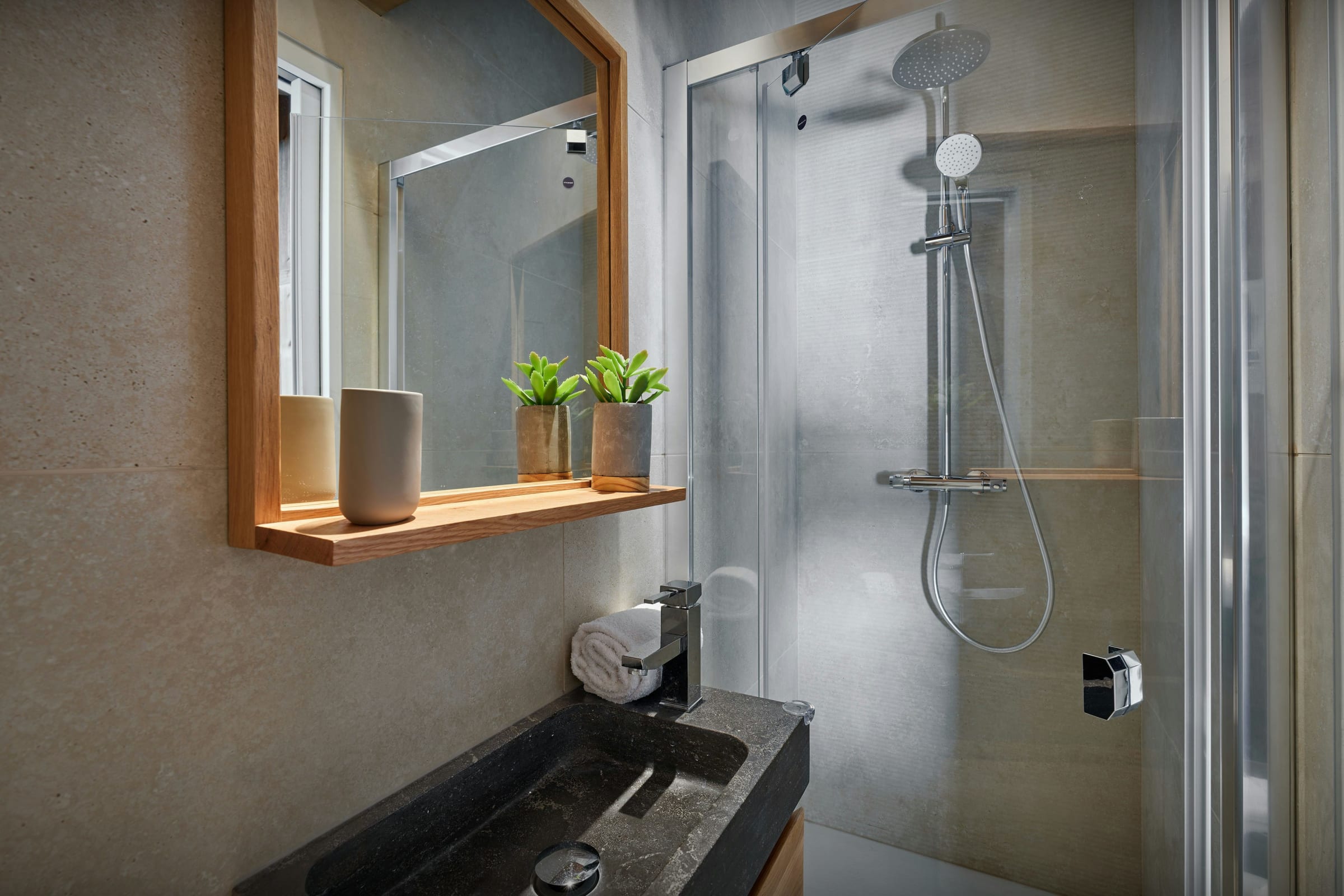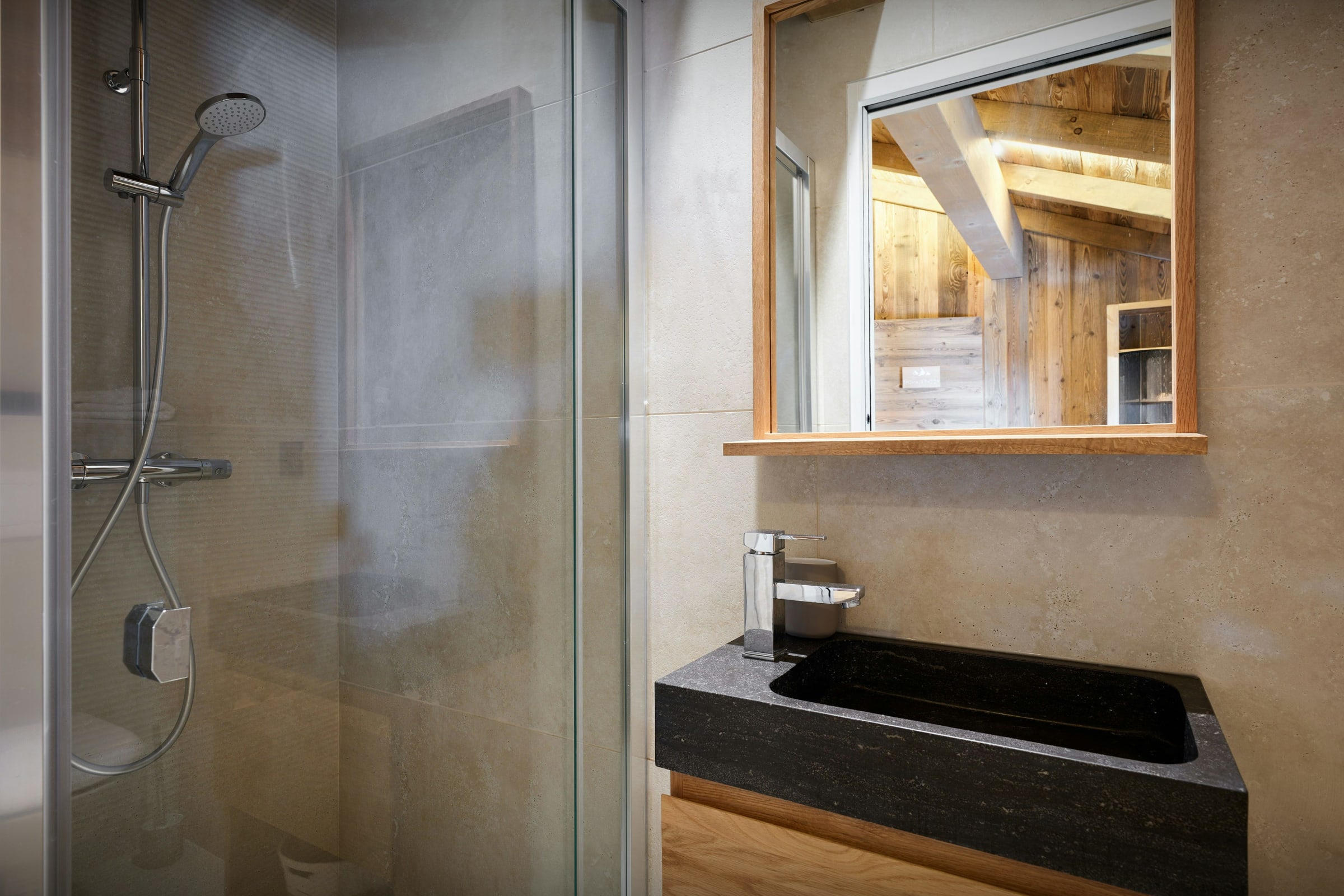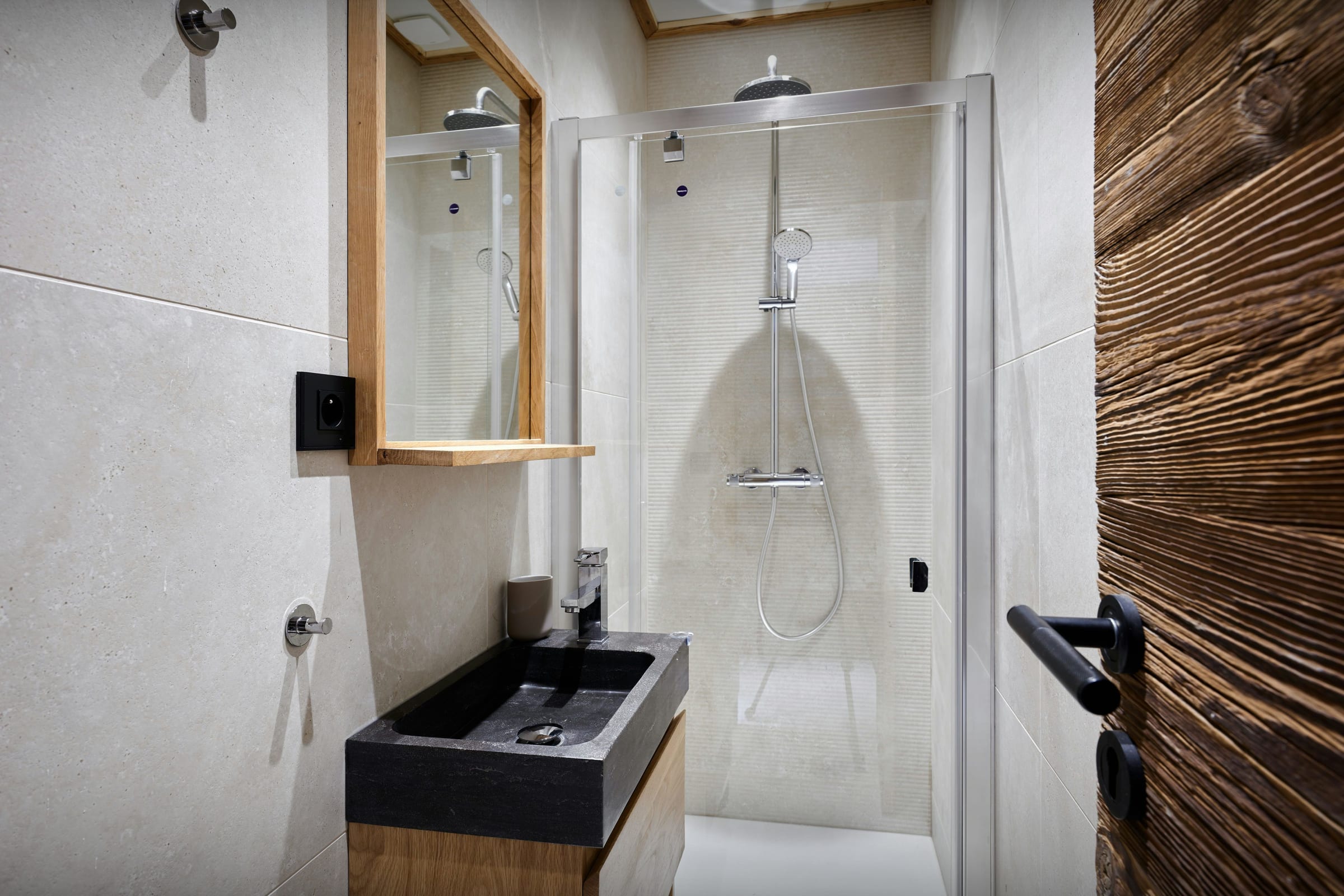 Toutes les chambres du Chalet Marmot’Inn sont équipées d’une salle de douche privative, trois d’entre elles comptant également des toilettes.