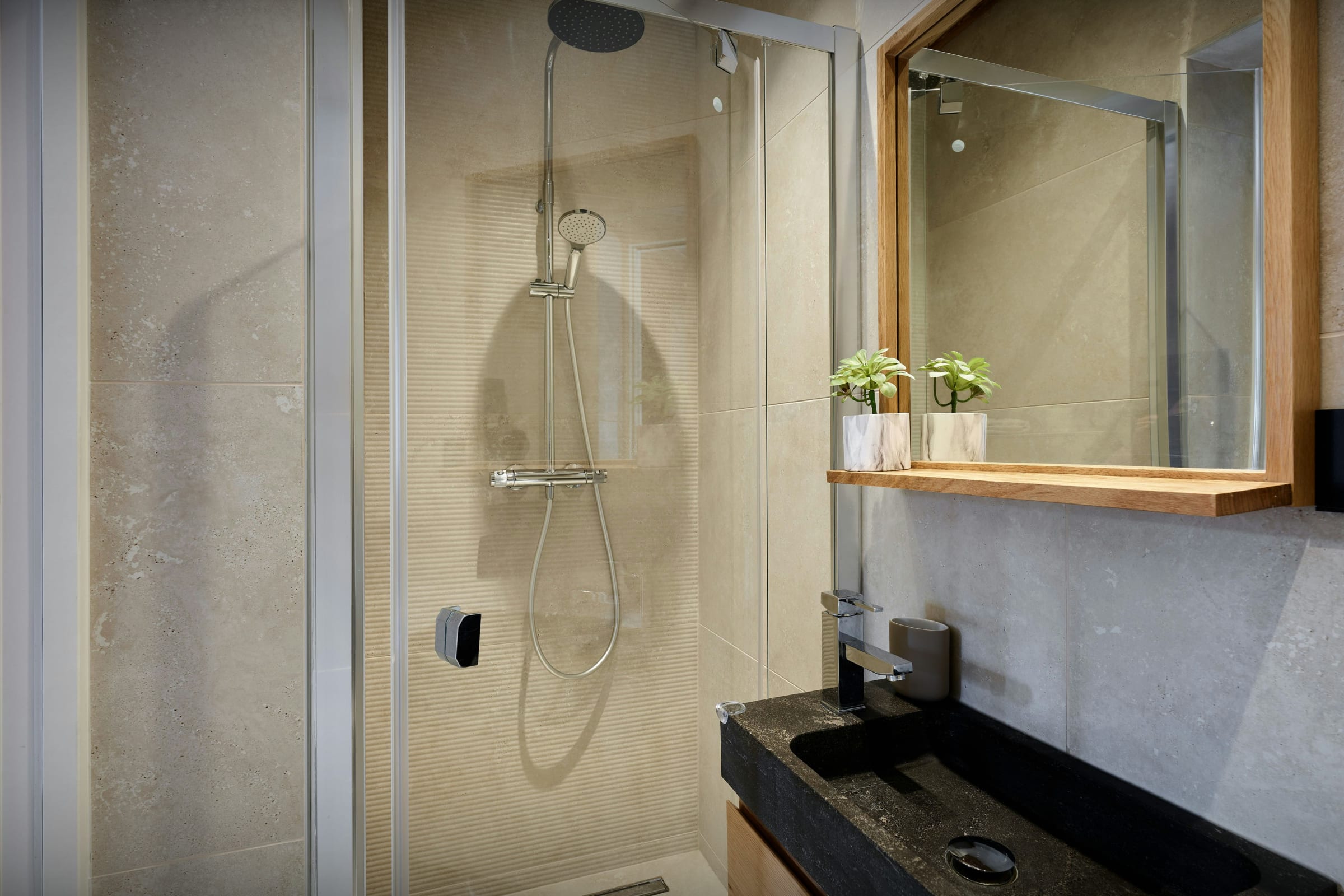 Dès l’entrée, le local à skis permet de se mettre à l’aise au retour des activités. Il est accompagné d’une buanderie très fonctionnelle, équipée d’un lave-linge et d’un sèche-linge.