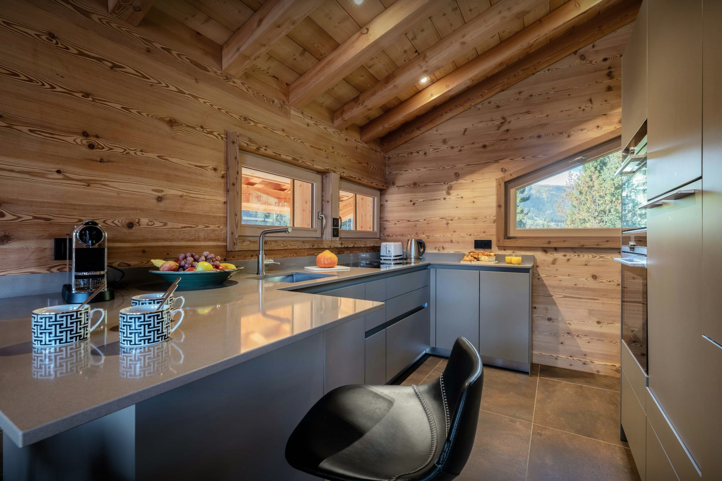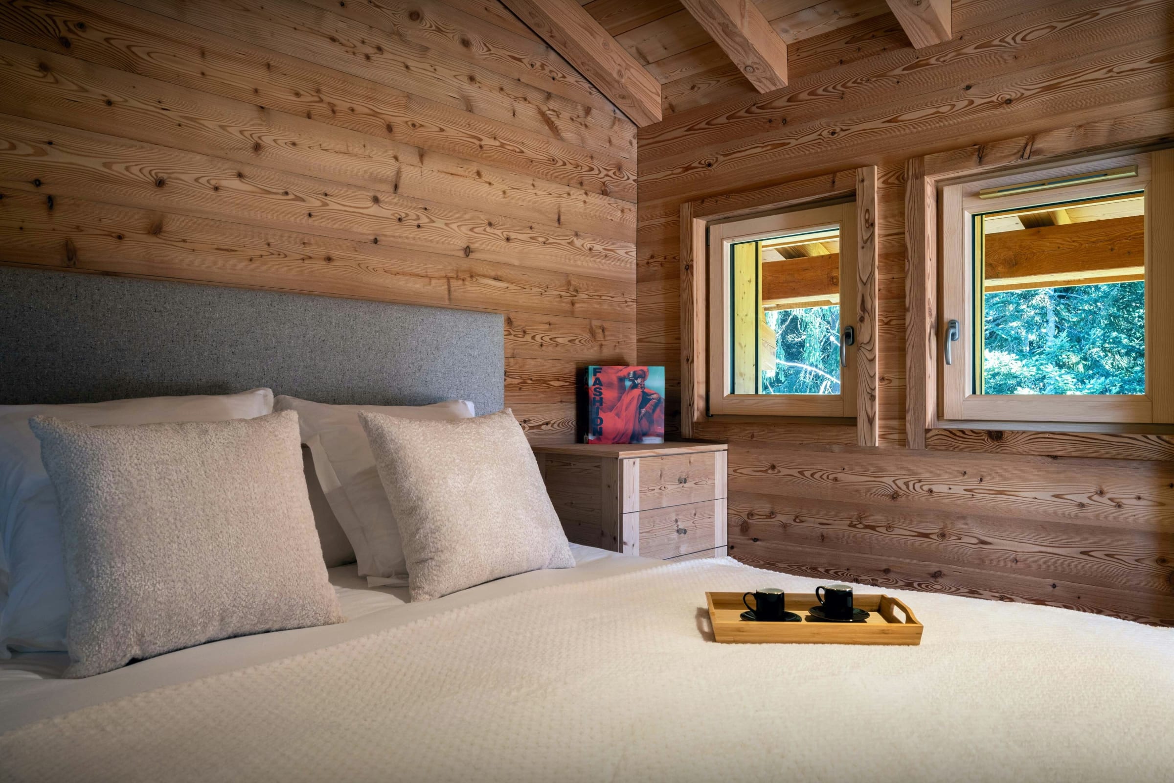 Le Chalet Ellambra est un chalet neuf (livré en 2025) qui bénéficie d’une situation agréable, au bout d’une rue résidentielle calme, à moins de 10 min de route du centre de Combloux. Il compte cinq chambres et cinq salles de bains sur trois niveaux, pour une capacité totale de 12 vacanciers (dont 11 adultes).