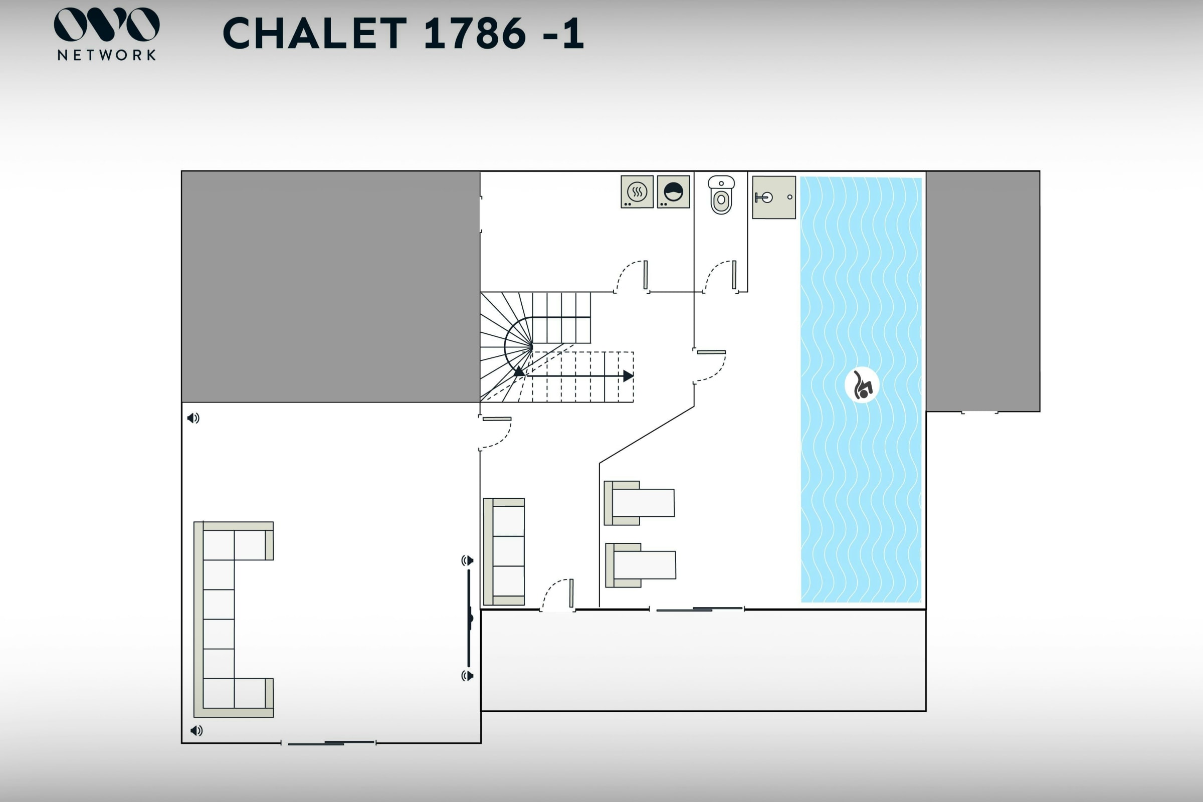 C’est au rez-de-chaussée que vous trouverez les équipements les plus célébrés du Chalet 1786 : une merveilleuse piscine intérieure chauffée et une salle de cinéma très confortable, équipée d’un système audio SONOS. Une buanderie très pratique inclut lave-linge et sèche-linge.