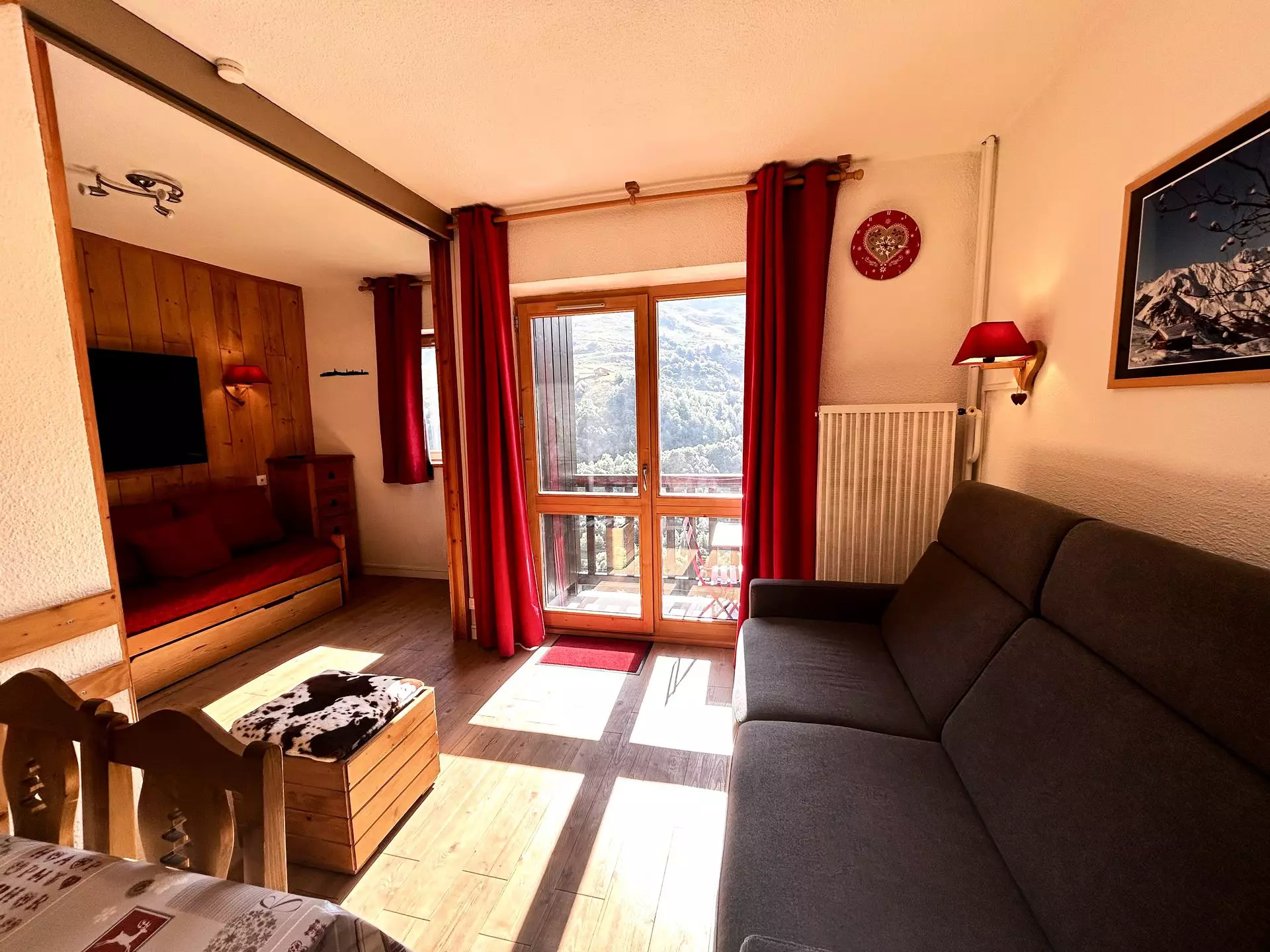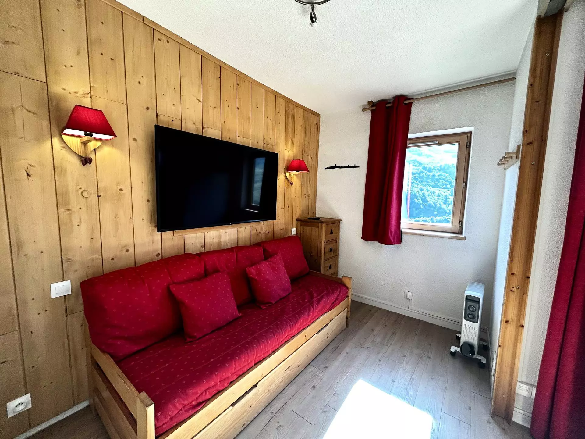 Résidence Jettay entrée "B" Bruant (N°76), 2 pièces séparées par une cloison mobile pour 4 personnes 25m², au 3ème étage par ascenseur, balcon exposé Ouest, vue sur la montagne