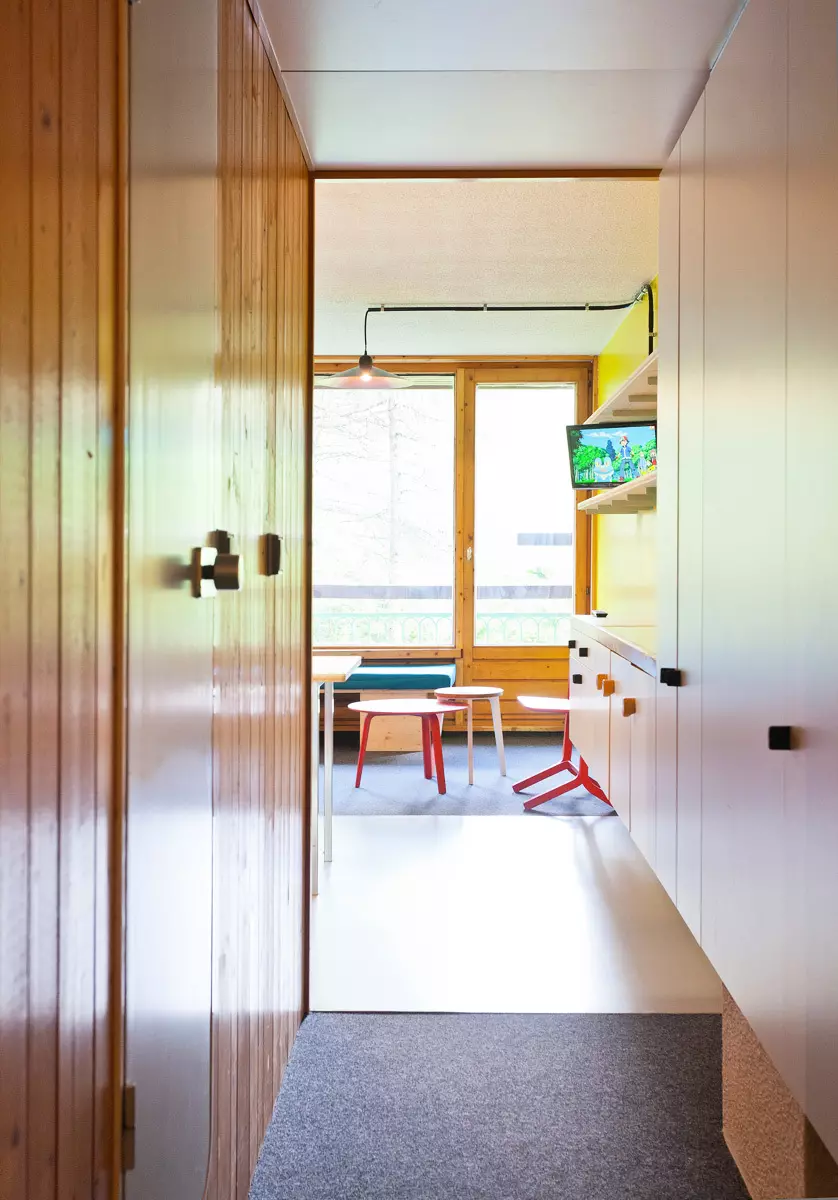Studio composé d'une entrée avec 2 lits superposés (le couchage en hauteur ne convient pas aux enfants de -6 ans) + 1 lit gigogne