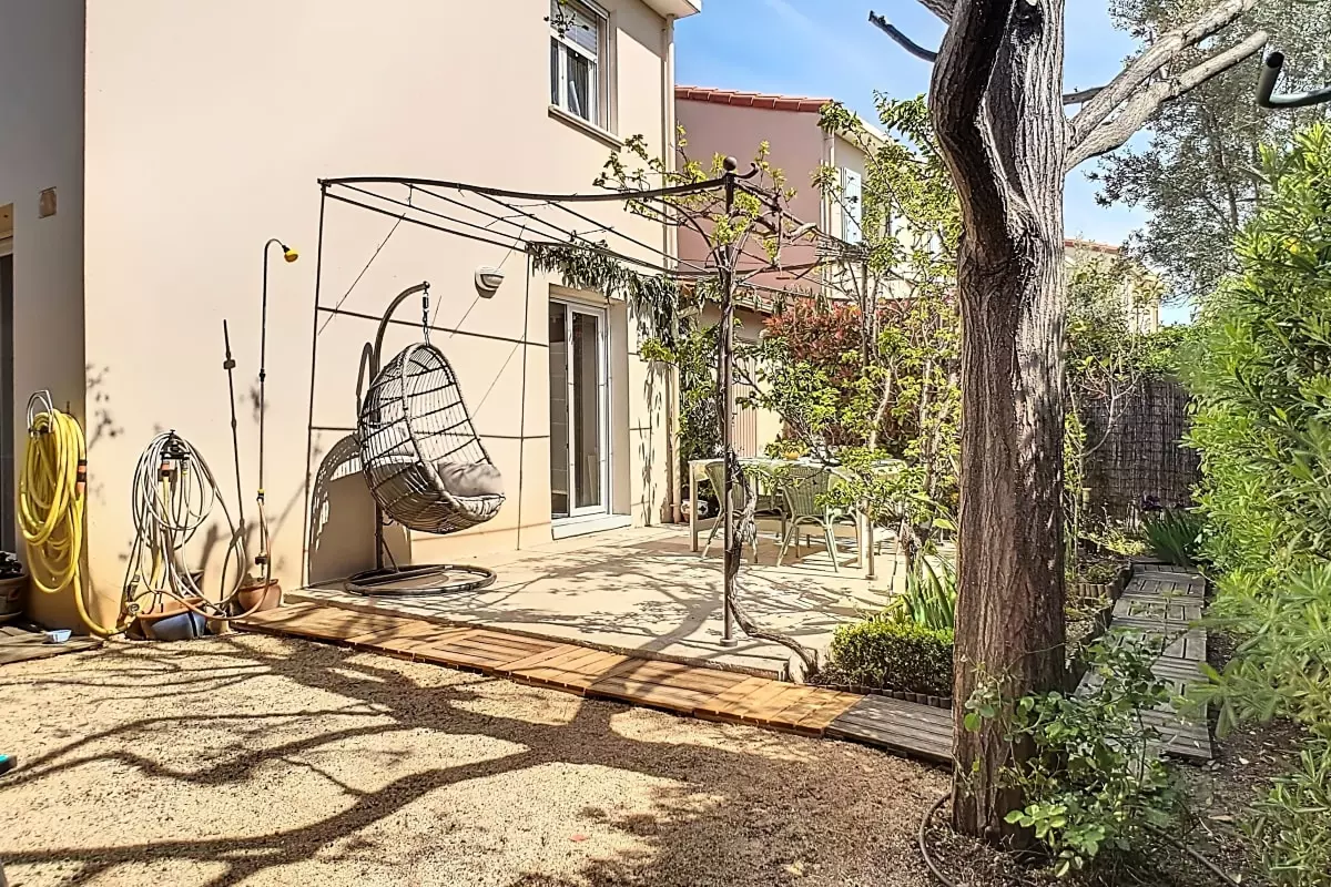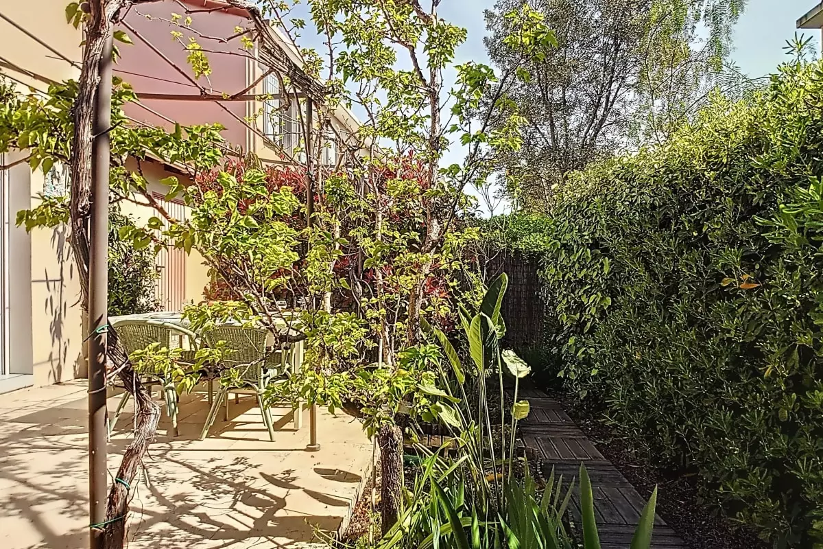 un jardin agréable avec espace pétanque. Vous apprécierez particulièrement sa luminosité et sa terrasse.