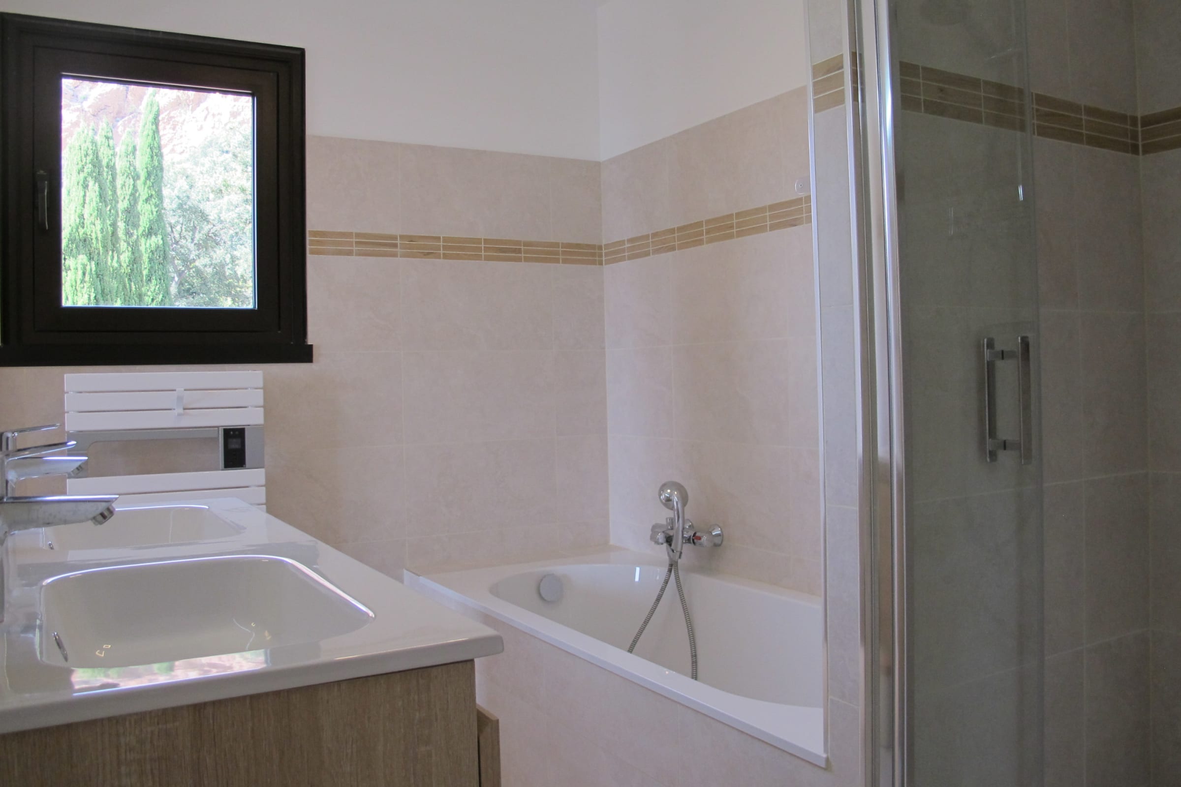 A l'étage 2 chambres avec salle de bain avec douche et baignoire et d'un WC séparée.