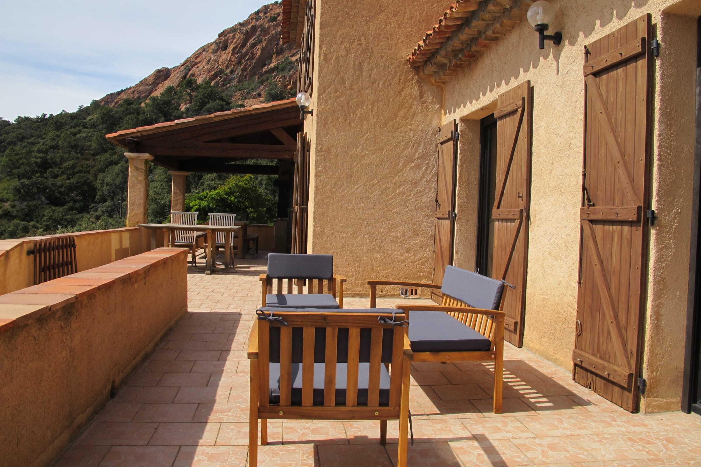 Grande terrasse avec vue panoramique sur la baie d'Agay, piscine de 10*4.