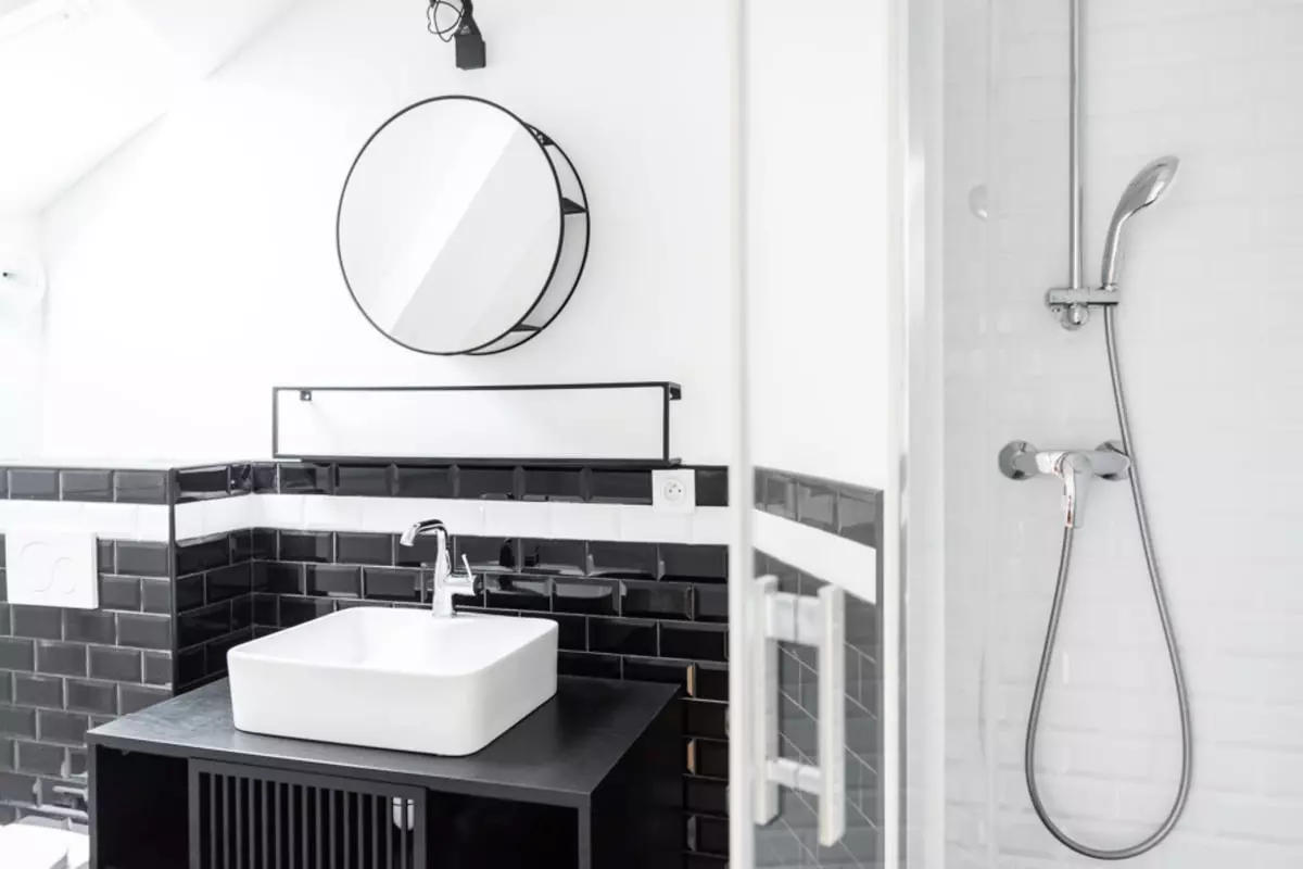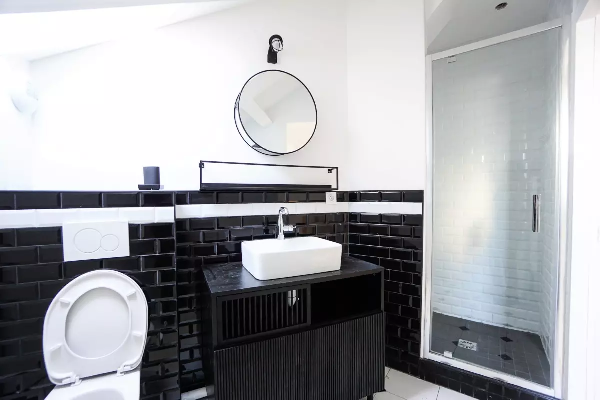 Parfait pour un séjour touristique ou professionnel, cet appartement peut accueillir jusqu'à 4 personnes. Il se compose d'une chambre avec un lit double, d'une élégante salle de bain en noir et blanc avec douche, et d'un salon cosy doté d’un canapé convertible et d’une télévision.