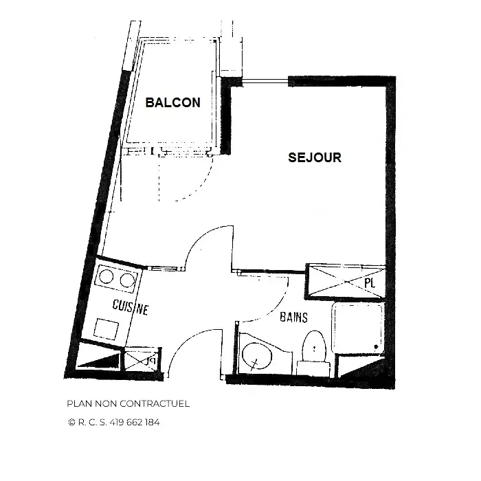 Résidence Armoise (N°70), studio pour 2 personnes, 18m², au 6ème étage par ascenseur, petit balcon exposé Est.