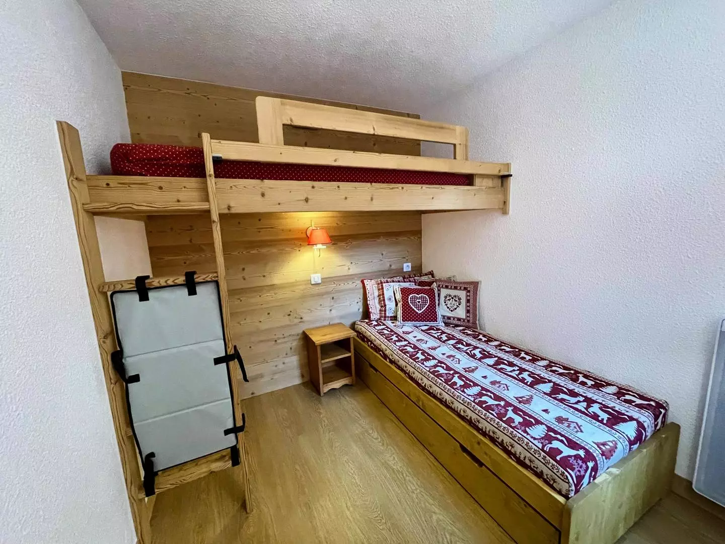 - La chambre comprend un canapé lit-gigogne (2 personnes. 80 x 190 cm) ainsi qu'un lit mezzanine (1 personne).