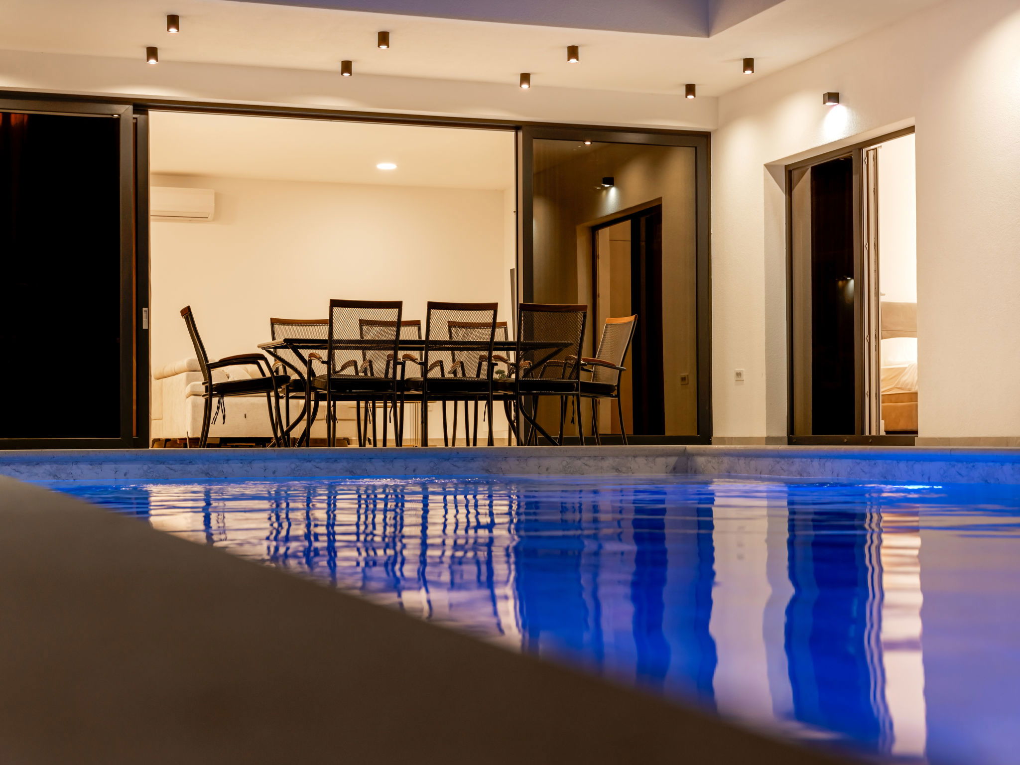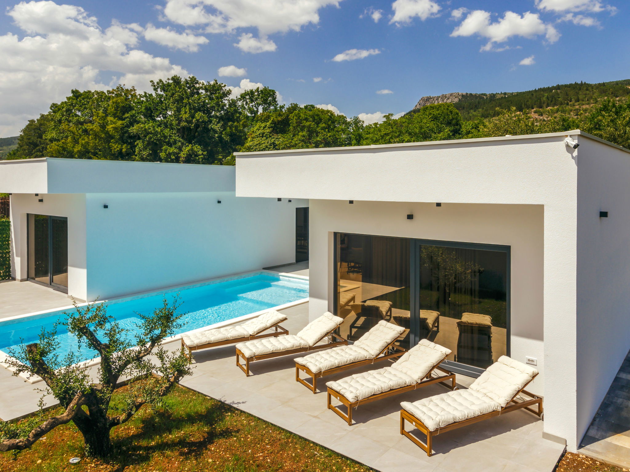Donji Proložac à 5 km de Imotski: Belle villa moderne "Olive", année de construction 2024. Situation tranquille, ensoleillée, à 38 km de la mer, dans une impasse. A usage privé: terrain 1'500 m2 (clôturé), piscine rectangulaire, chauffée (9 x 4 m, profondeur 150 cm, disponibilité saisonnière: 01.Mai. - 01.Oct.) avec marches intérieures. Terrasse (40 m2), meubles de jardin. Infrastructures de la Maison: accès internet. Place de parking (pour 4 voitures) près de la maison sur le terrain. Magasins 500 m, restaurant 2.5 km, arrêt de bus 4.3 km, plage de graviers 38 km. Les lacs connus sont facilement accessibles: Modro jezero 5 km, Crveno jezero 5 km. Piscine hydromassage.