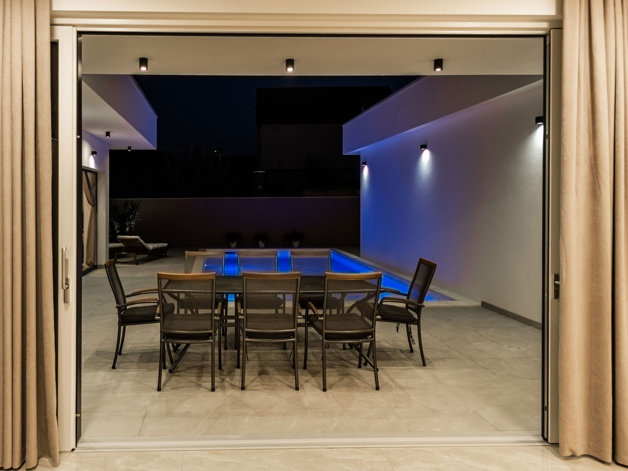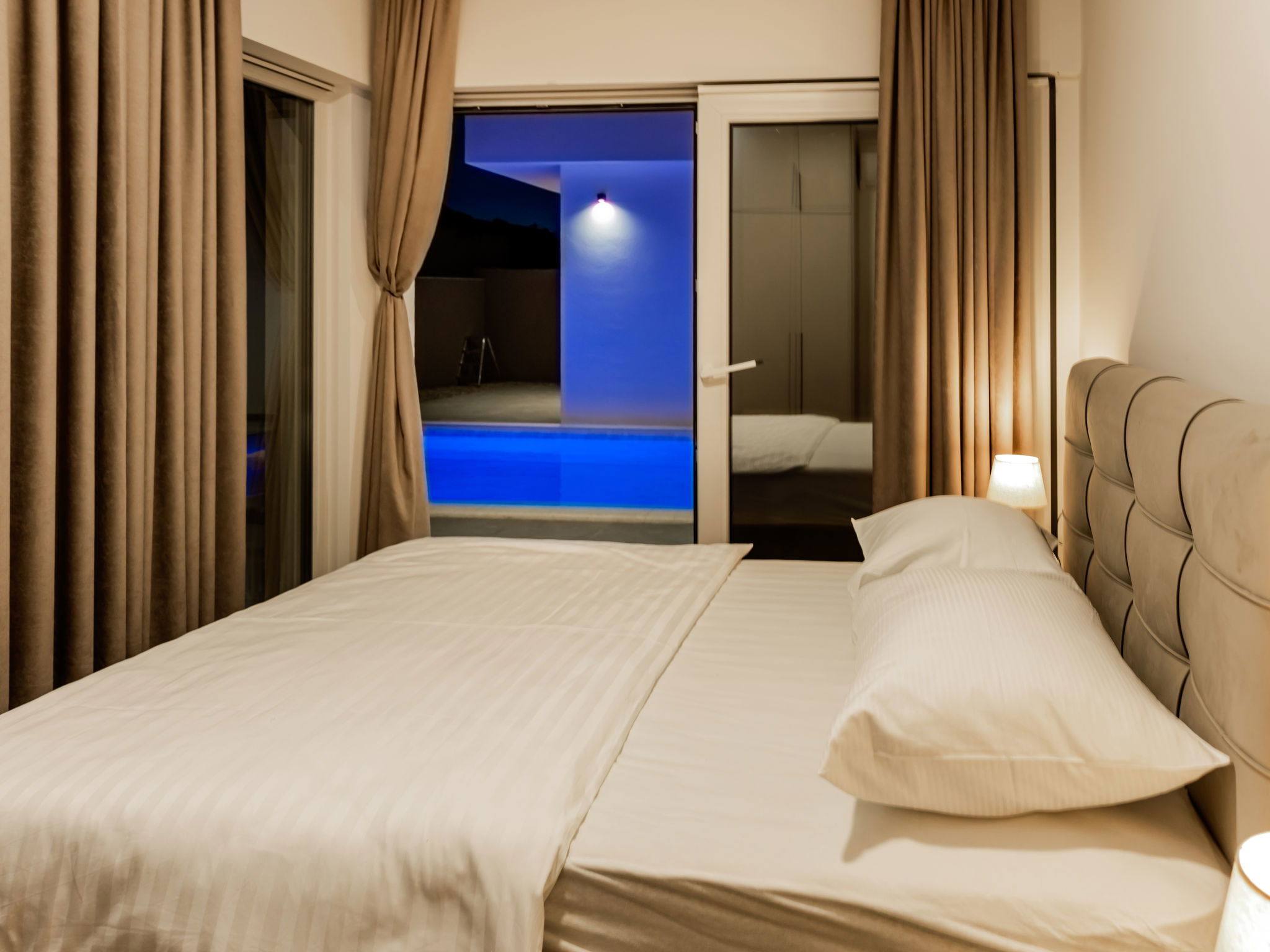 Villa 5 pièces 200 m2, situation sud. Aménagement agréable et moderne: séjour/salle à manger 70 m2 avec 1 divan-lit double (140 cm, longueur 200 cm), TV (satellite) (écran plat), air-conditionné. Sortie sur la terrasse, sur la piscine. 2 chambres, chaque chambre avec: 1 grand-lit (160 cm, longueur 200 cm), douche/WC et air-conditionné. 2 chambres, chaque chambre avec: 1 grand-lit (160 cm, longueur 200 cm), air-conditionné. Cuisine ouverte (four, lave-vaisselle, 4 plaques vitrocéramiques, micro-ondes, congélateur, cafetière électrique). Douche/WC, WC séparé. Chauffage. Meubles de terrasse, chaises longues (5). Vue sur la piscine. A disposition: lave-linge, chaise haute pour enfant, lit bébé, sèche-cheveux. Internet (Connexion WIFI, gratuit).