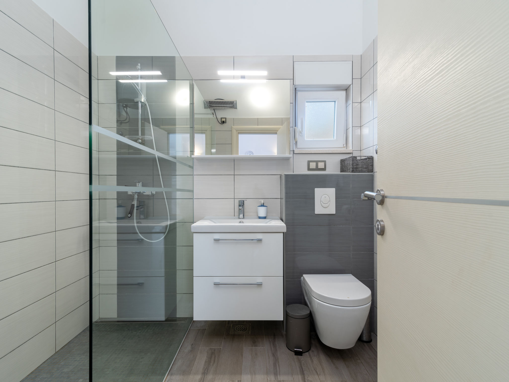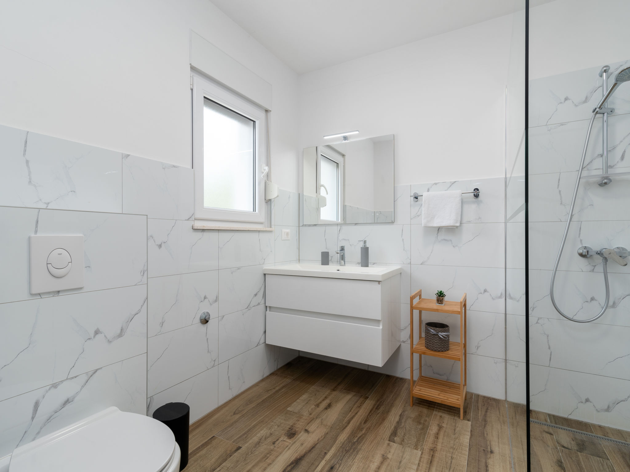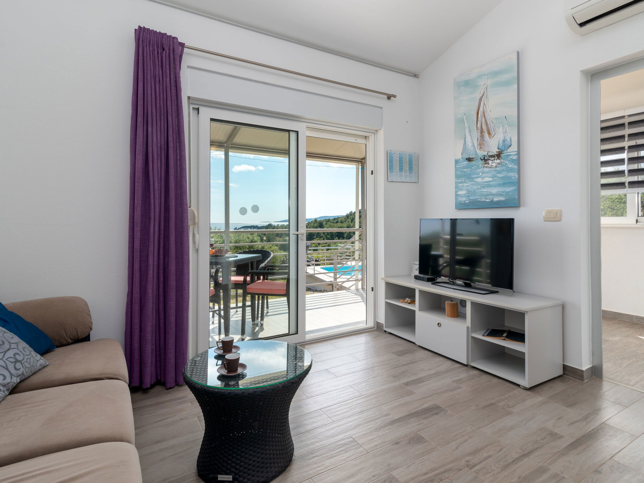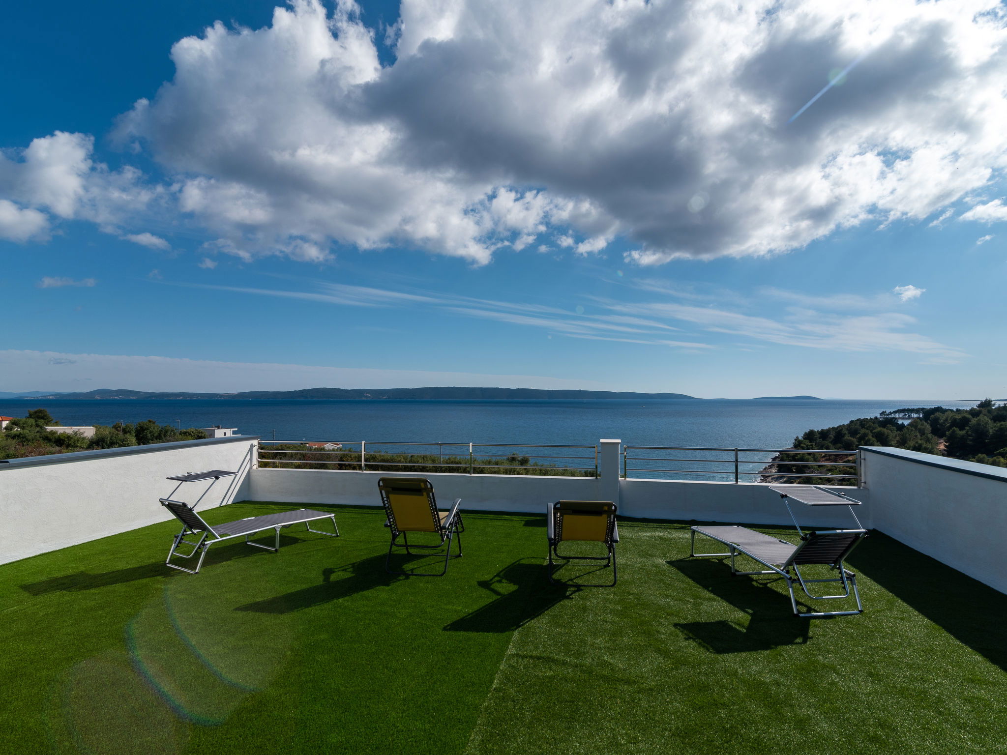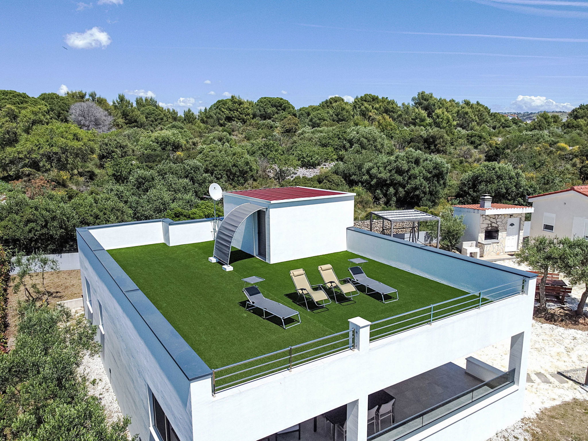 Okrug Gornji (Čiovo): Maison "Ria with heated pool". À 1.5 km du centre d'Okrug Gornji, à 5 km du centre de Trogir, situation tranquille, ensoleillée, à 180 m de la mer, à 180 m de la plage. A usage privé: terrain 1'200 m2 (clôturé), arbres, piscine chauffée (26 m2, profondeur 150 cm, disponibilité saisonnière: 04.Avr. - 06.Nov.). Douche extérieure, meubles de jardin, barbecue. Infrastructures de la Maison: accès internet, terrasse sur le toit, lave-linge. Accès en voiture jusqu'à la maison (50 m chemin non goudronné). Place de parking (pour 3 voitures) près de la maison sur le terrain. Magasins 500 m, supermarché 1.5 km, restaurant 1.5 km, arrêt de bus 500 m, plage de graviers 180 m. Veuillez noter: Aéroport 10 km de la maison. L‘unité comprend une grande maison (100 m2) et une petite maison (46 m2), louées ensemble.