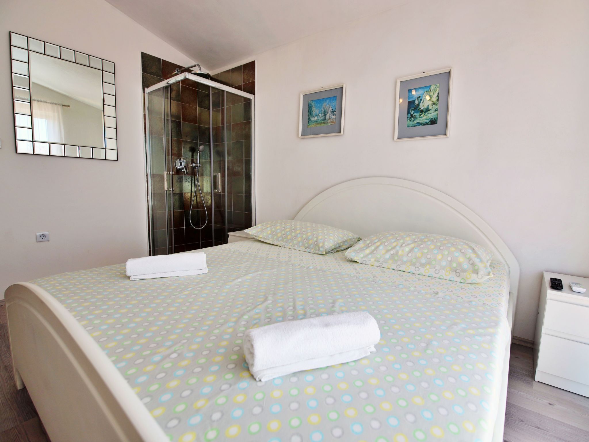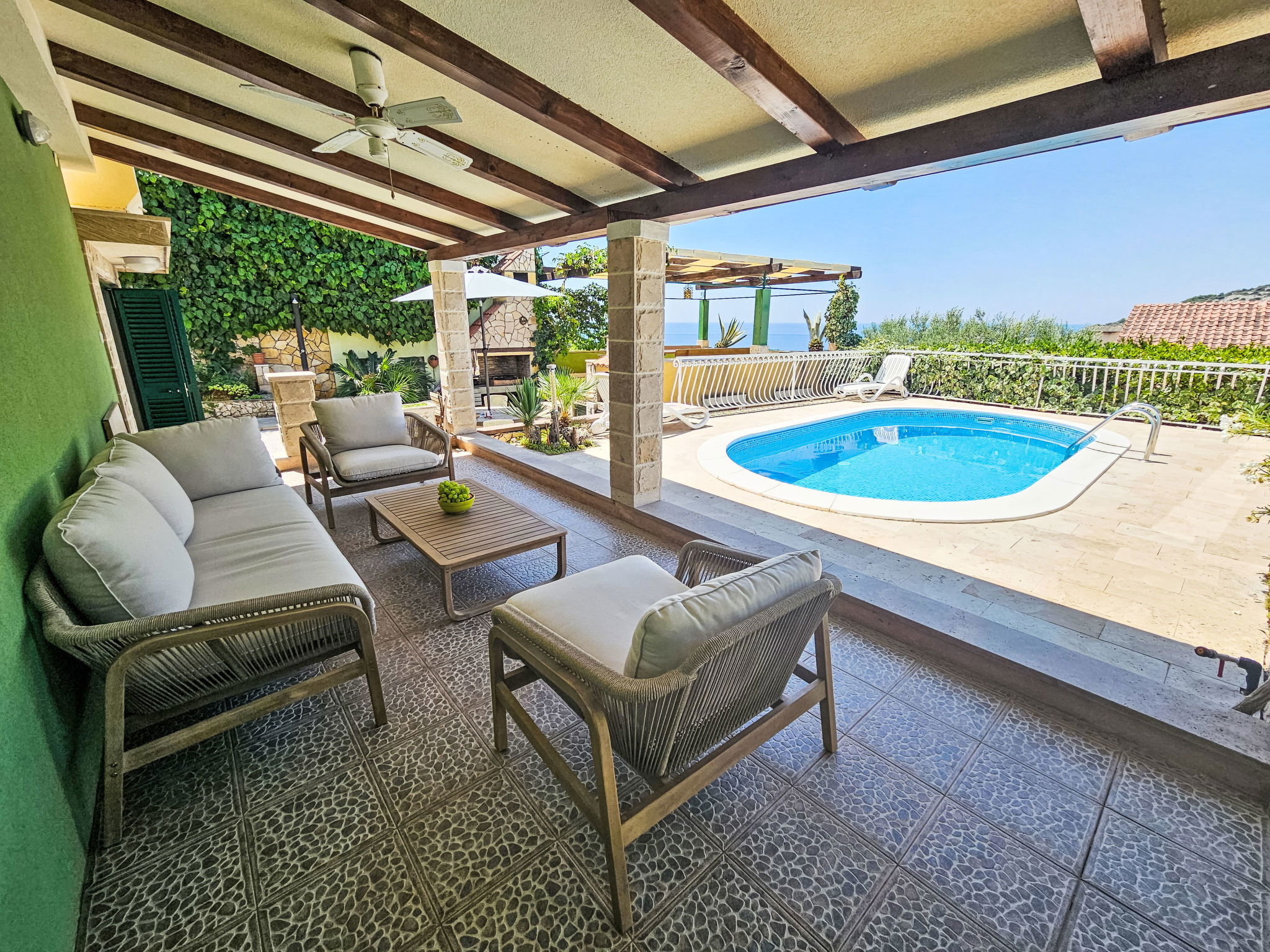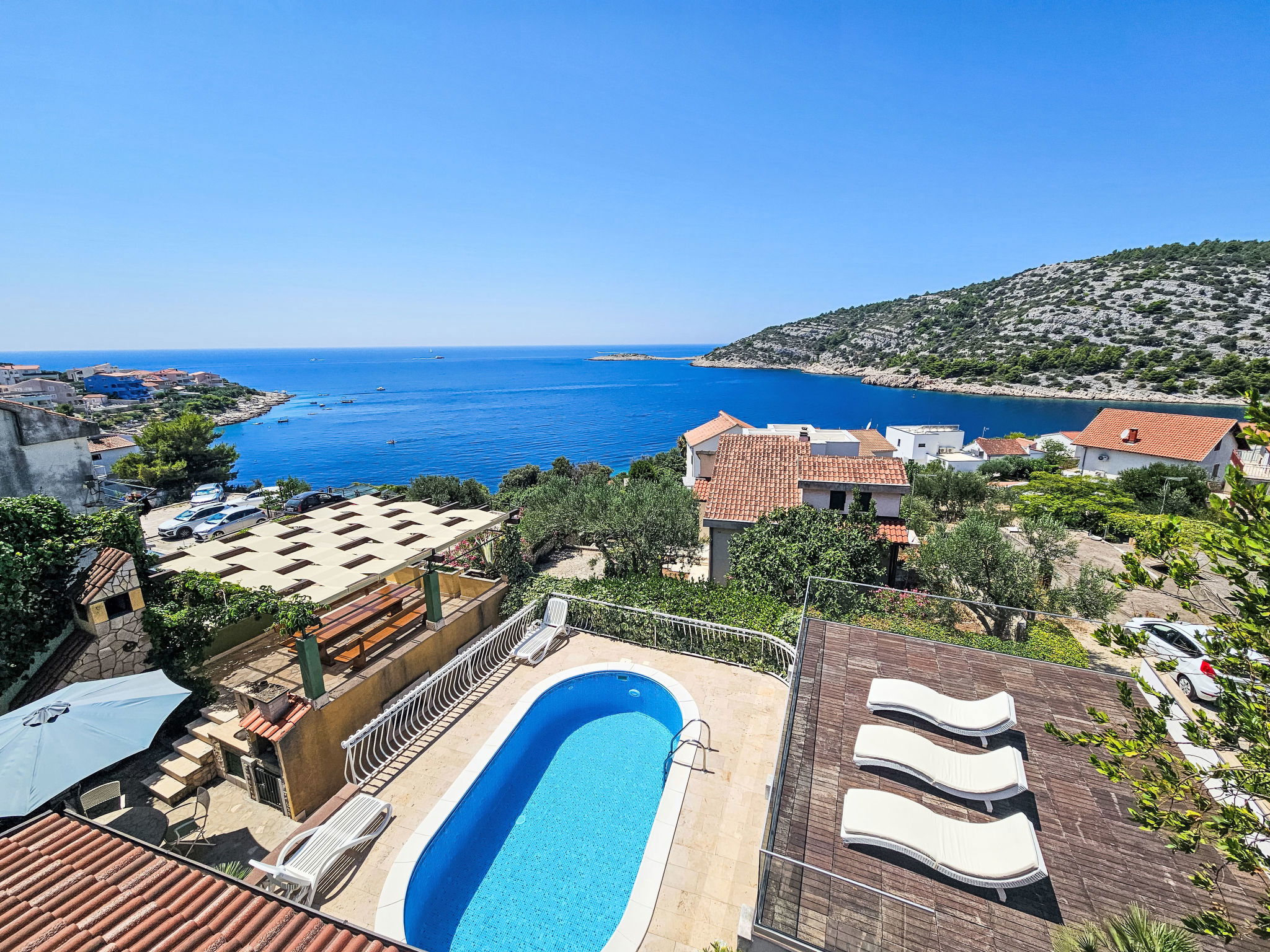 Ražanj à 10 km de Rogoznica: Maison individuelle "Carmen", de 3 étages. Situation tranquille, ensoleillée sur un versant, à 90 m de la mer, à 90 m de la plage, dans une impasse. A usage privé: petit jardin plantes et arbres, piscine chauffée (6 x 3 m, profondeur 150 cm, disponibilité saisonnière: 10.Jun. - 20.Sep.). Douche extérieure, bain à remous , terrasse (50 m2), meubles de jardin, barbecue. Infrastructures de la Maison: accès internet, ping-pong, terrasse ensoleillée. A disposition: vélos (2). Place de parking (couvert) près de la maison sur le terrain. Magasins, restaurant 500 m, arrêt de bus 6.4 km, plage de rochers, plage bétonnée 90 m. Veuillez noter: place d'amarrage privée (en sus).