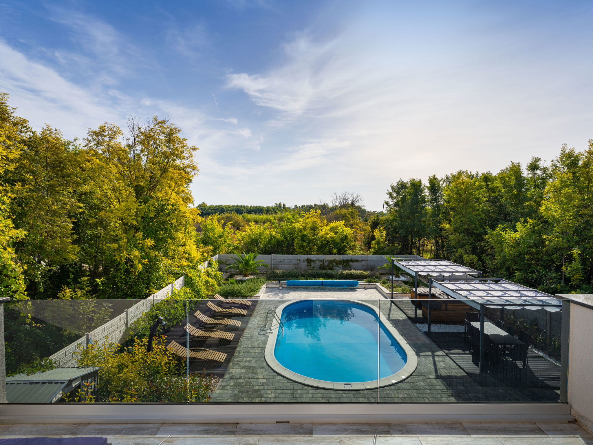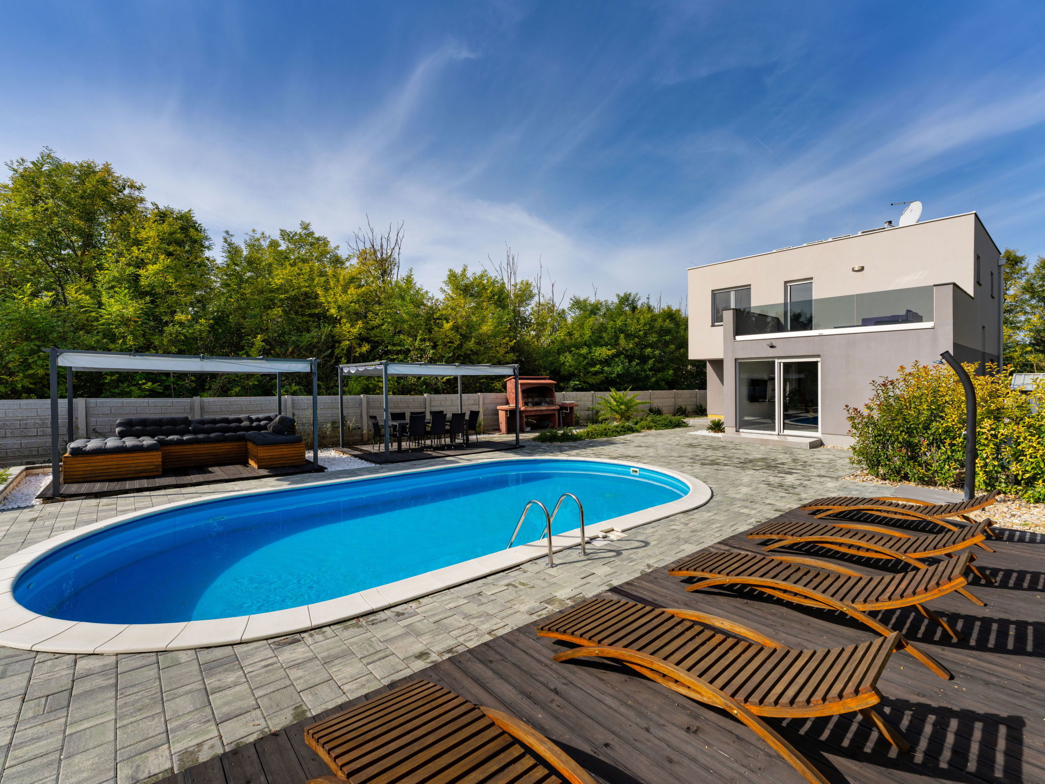 Maison individuelle "Gabi", de 2 étages, année de construction 2022. Dans le quartier de Skoblari, à 1.5 km du centre de Privlaka, situation ensoleillée, à 1 km de la mer, à 1.5 km de la plage. A usage privé: terrain 650 m2 (clôturé) avec plantes, piscine ronde, chauffée (9 x 4 m, 36 m2, profondeur 150 cm, disponibilité saisonnière: 01.Avr. - 01.Nov.) avec marches intérieures. Douche extérieure, tonnelle (24 m2), meubles de jardin, barbecue, entretien de la piscine par le propriétaire/jardinier. Infrastructures de la Maison: accès internet, lave-linge. Place de parking (pour 2 voitures) près de la maison sur le terrain. Magasins 1.5 km, restaurant 1.5 km, arrêt de bus 2.5 km, plage de sable 1.5 km plage de graviers 1.5 km. Veuillez noter: Aéroport 32 km de la maison.